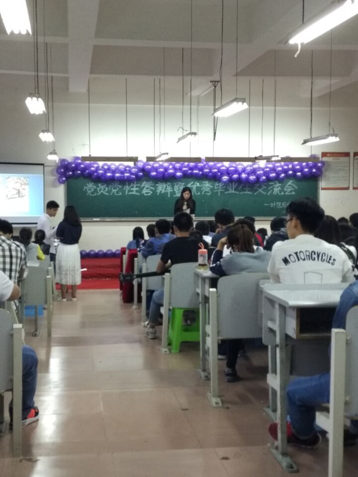 毕业在即,我系于2016年5月18日晚7点,在上级领导的支持与配合下,在系学生会各部门的帮助下在2教102顺利举行“党员党性答辩暨优秀毕业生交流会”。