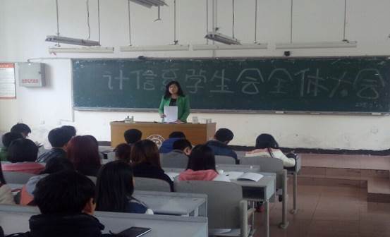 大会上,卓莉老师首先就上个学期的工作做了总结,并指出上学期活动开展中存在的一些问题,其次对本学期的工作进行了详细的布置,并告知我们学生会是老师和同学之间的桥梁和纽带,应时刻关注同学,帮助同学,带领同学做好学习和生活中的工作,营造良好的学习氛围,使我系同学在学习生活中都能得到进步与发展,同时提出我系学生会活动应形式多样,勿拘泥于传统活动形式,尽量多开展有文化有内涵有创意的活动,以此带动同学们积极参与活动的兴趣,在活动中得到应有的锻炼与经验。开会过程中她宣布我系网建部和学科部合成为一个部门,以后一起工作一起合作进步。最后卓莉老师还强调同学们要以学习为重,好好学习,做到学习工作两不误。本次大会中学生会主席李光东还与大家谈了他上学期以来对学生会工作的一些想法和建议,他说:学生会是个大家庭,融入了来自我系各个班级的优秀人才。我们彼此认识、交流,一起出谋划策。它给我们提供了大大小小的机会,使大家互相学习,扬长避短,共同进步。无论你做的如何,大家都会给你一个很公正的评价以及很好的建议,只有团结协作,才能更好地完成工作,才能在工作中不断发现问题,改进问题,才能提高学生会的整体战斗力。
