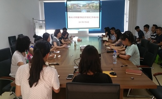 新闻网讯(党群工作部/冉双)为了进一步提高学院基层党务工作者的理论修养和工作能力,不断增强党支部的创造力、凝聚力和战斗力,充分发挥好基层党组织的战斗堡垒作用和党员干部的先锋模范作用,2017年7月4日上午,学院在新校区A305会议室召开了党务工作培训会,院党委副书记尹晓莉、各党总支书记/负责人及全体辅导员参加此次培训会,会议由尹晓莉主持。