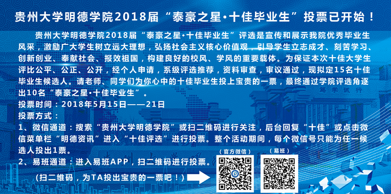贵州大学明德学院2018届“泰豪之星·十佳毕业生”投票已开始!