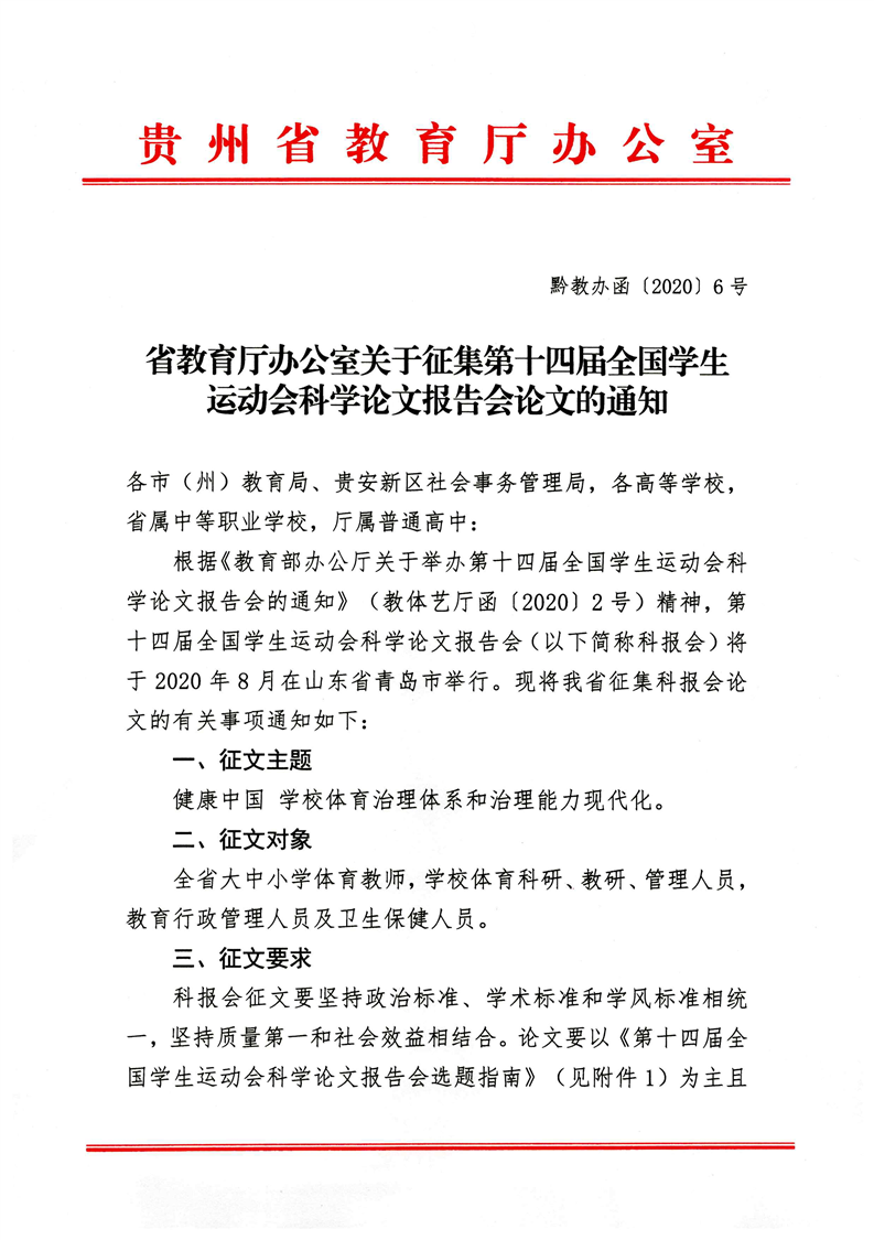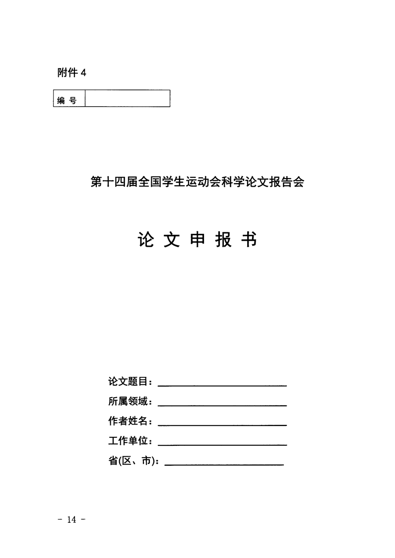 省教育厅办公室关于征集全国第十四届学生运动会科学论文报告会论文的通知