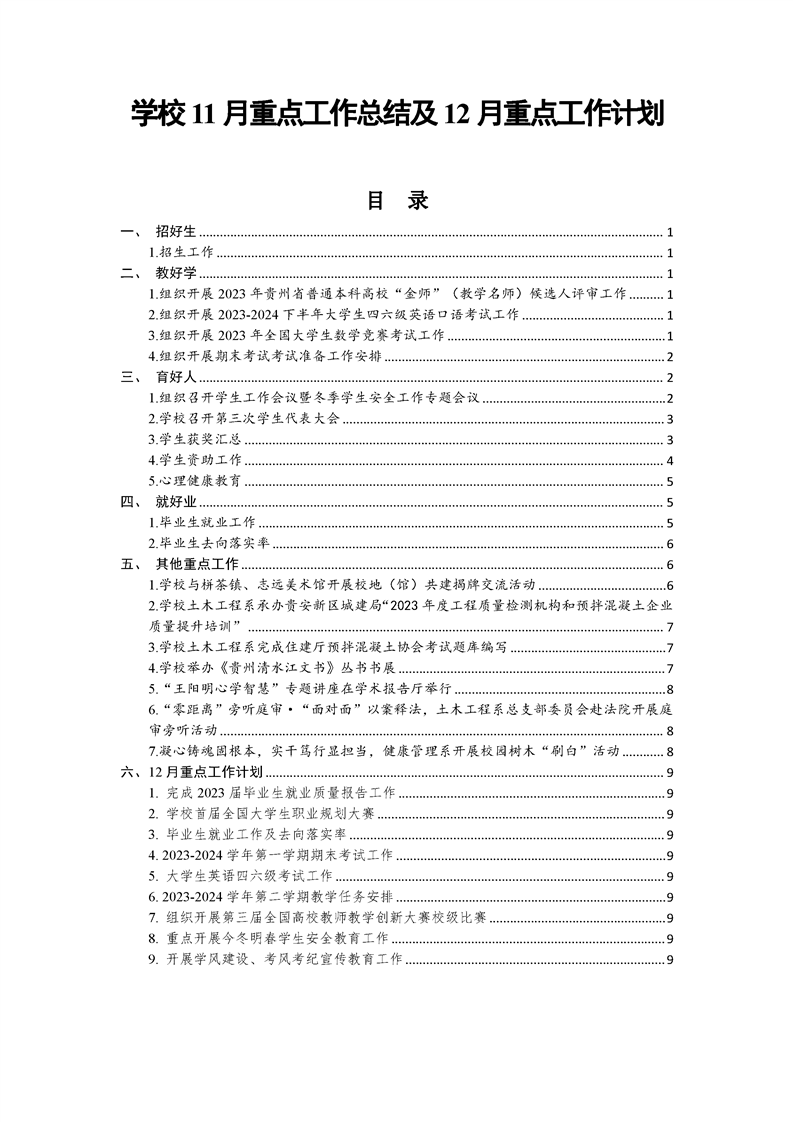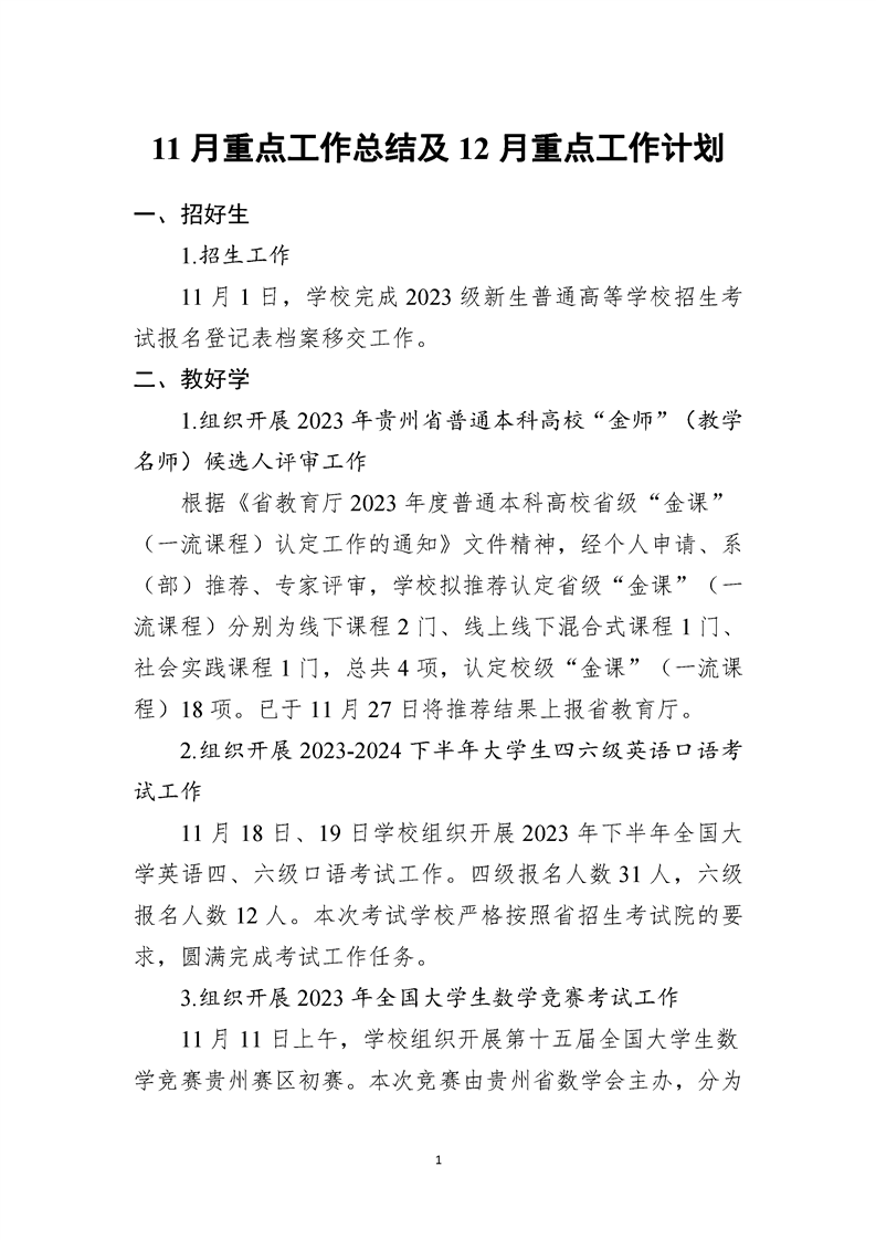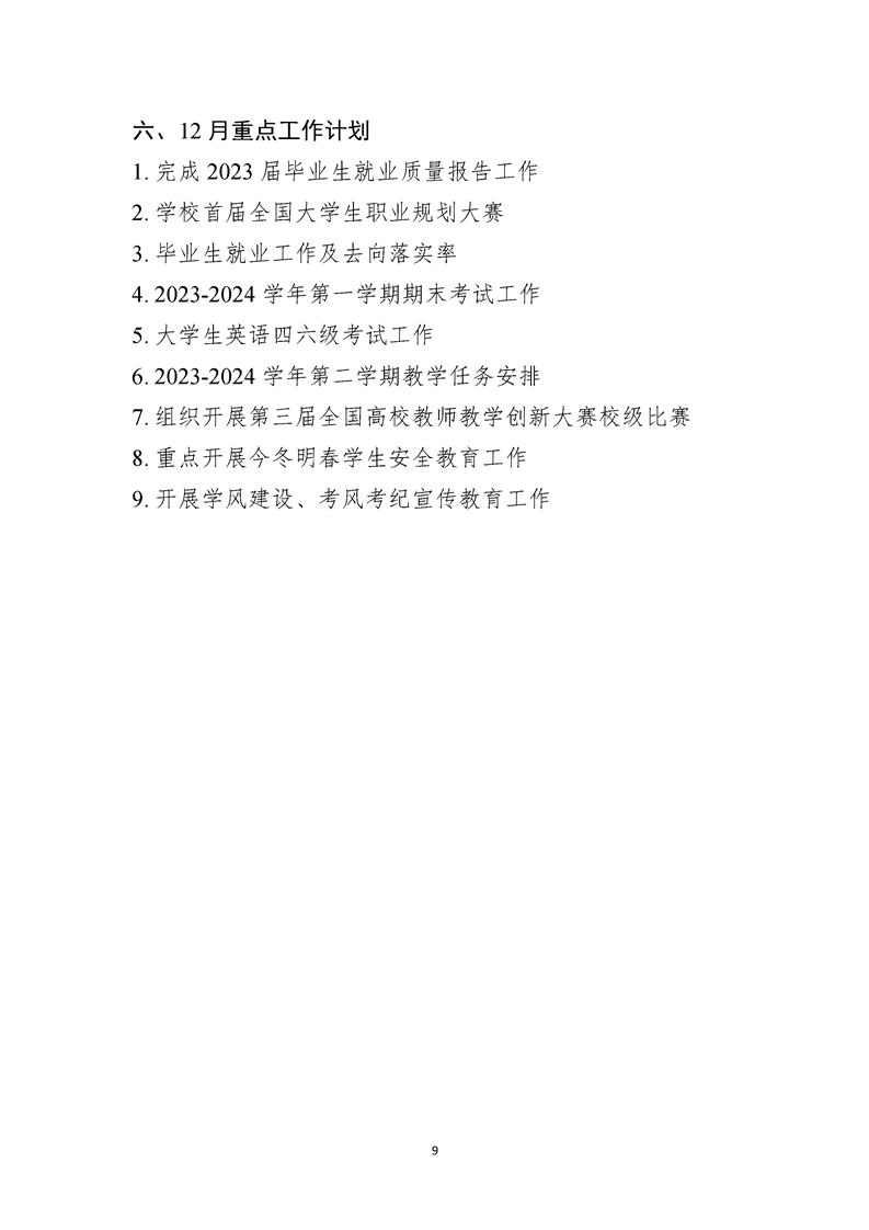 2023年学校12月重点工作总结及2024年1月重点工作计划