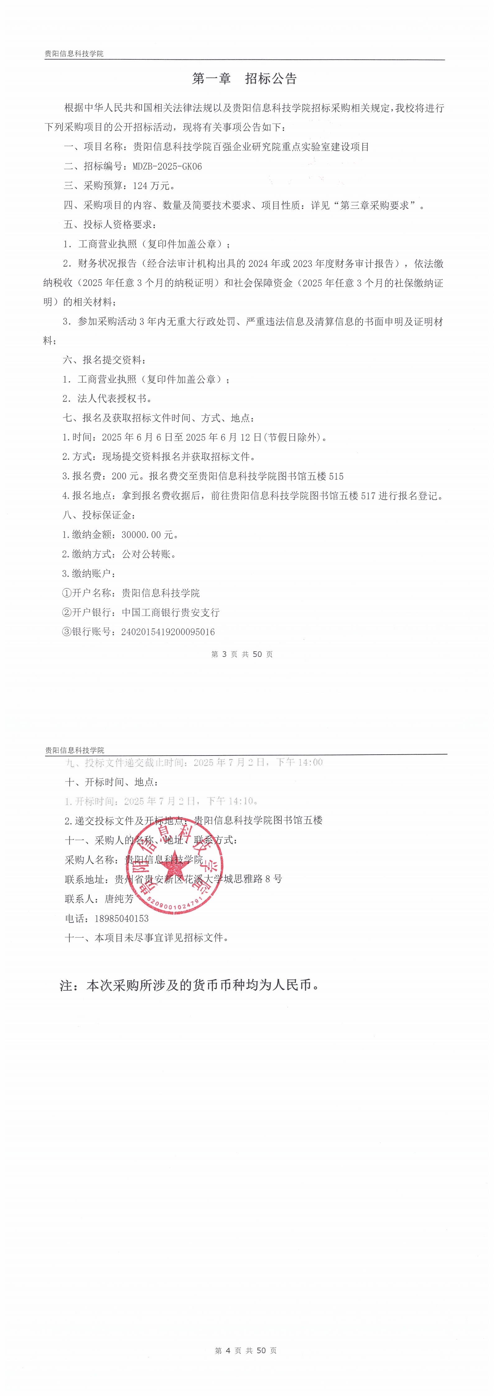 贵阳信息科技学院百强企业研究院重点实验室建设项目招标公告