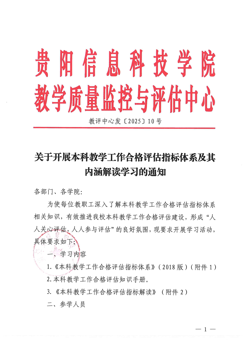 关于开展本科教学工作合格评估指标体系及其解读学习的通知