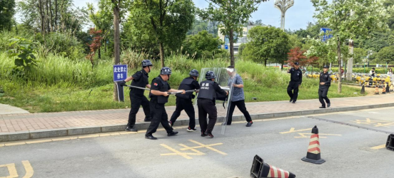 为进一步普及反恐、防暴基本常识,提高安保人员对校园突发暴力事件的反应和处置能力,6月10日上午,保卫处联合贵安新区公安局治安(反恐)支队开展反恐防暴演练活动,旨在有效应对校园重大突发事件,提升全校安保人员安全防范意识。