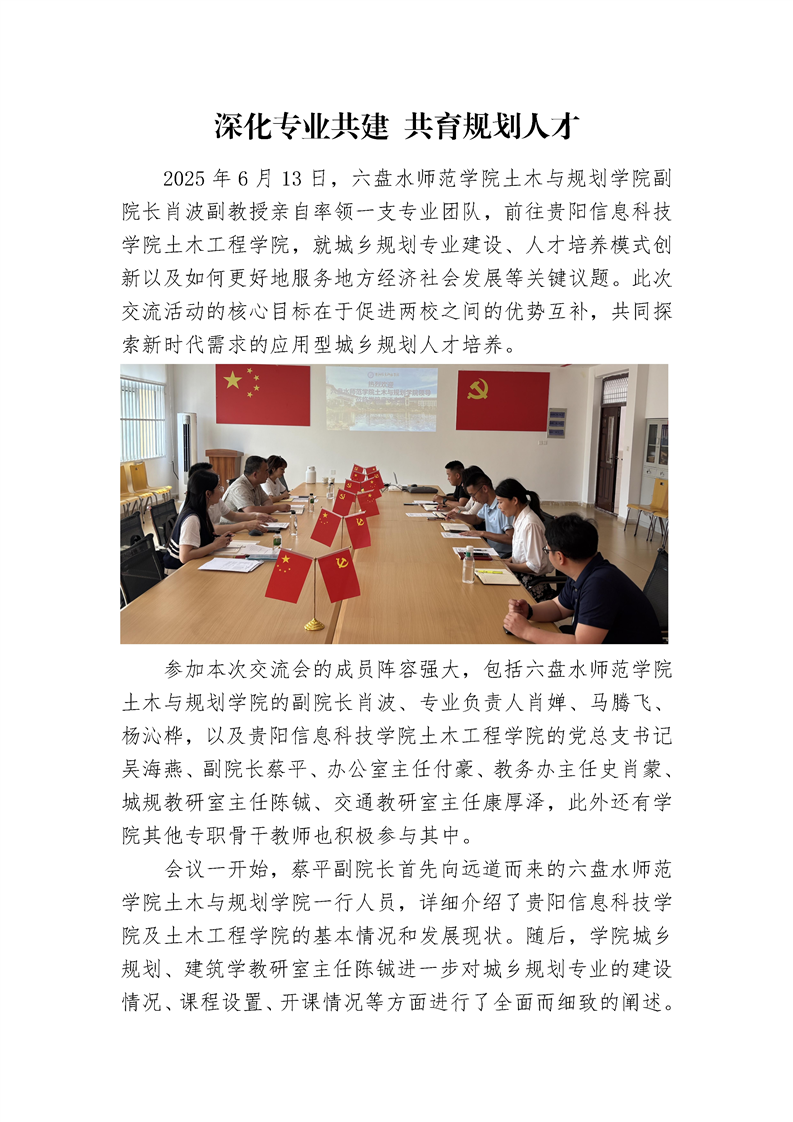 深化专业共建 共育规划人才——六盘水师范学院土木与规划学院莅临交流