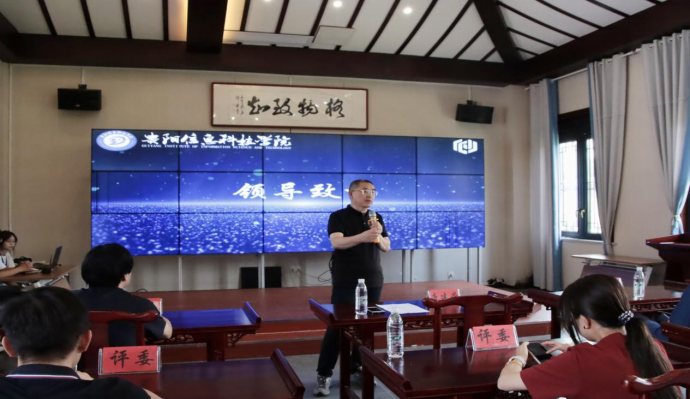 唐建荣校长为大赛致辞。他先是简要介绍了大赛背景和意义,传达了国家对大赛的重视和推动方向,而后深刻阐述了高校创新人才培养的重要意义,勉励学生“以赛促学、以赛促创”,并在青春的热血中勇攀高峰、创新求变,不断成长为具备创新思维、创业精神的高技能应用型人才。他寄望同学们用好学校搭建的比拼舞台,赛出青年学子的热血与担当。