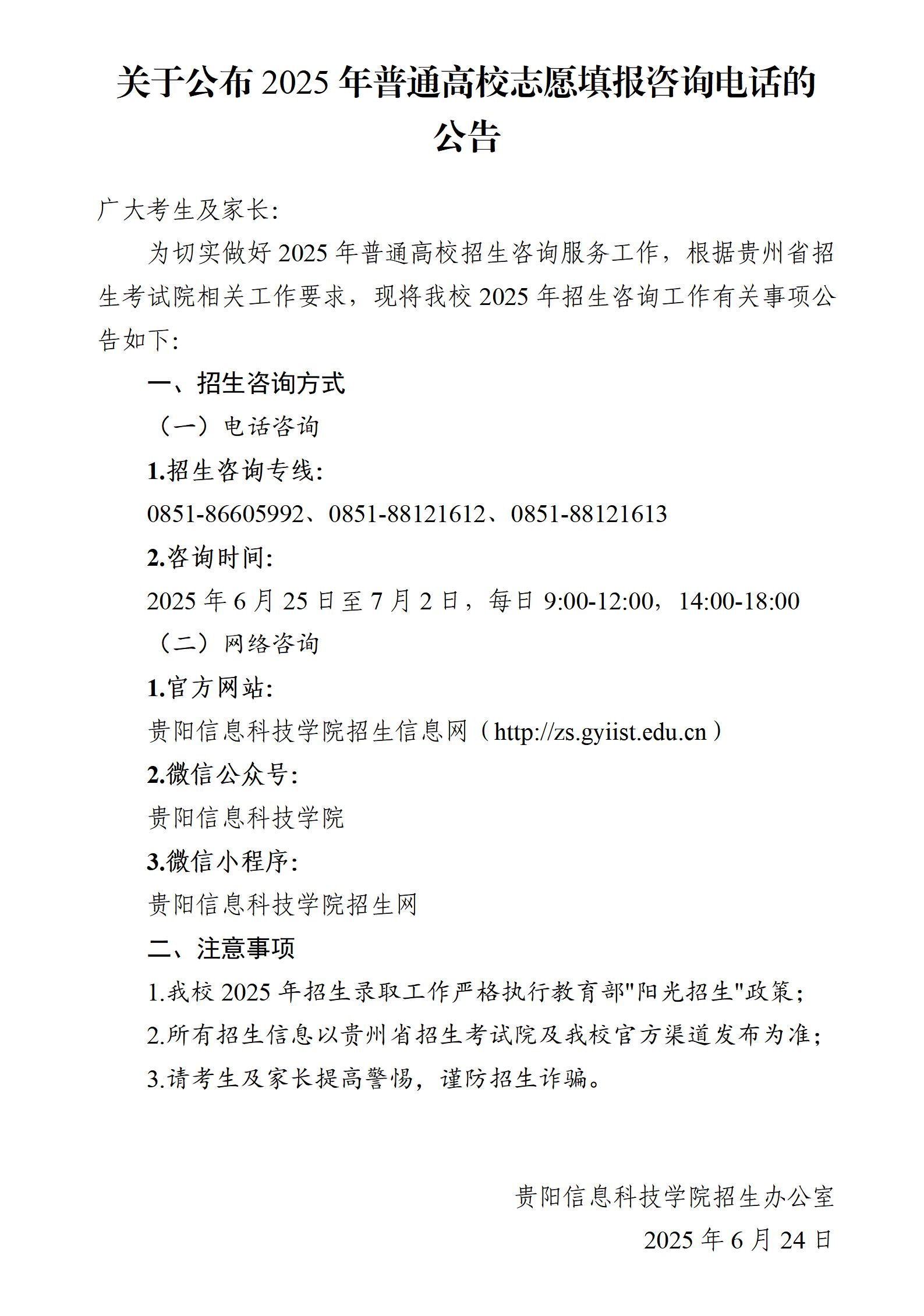 关于公布2025年普通高校志愿填报咨询电话的公告