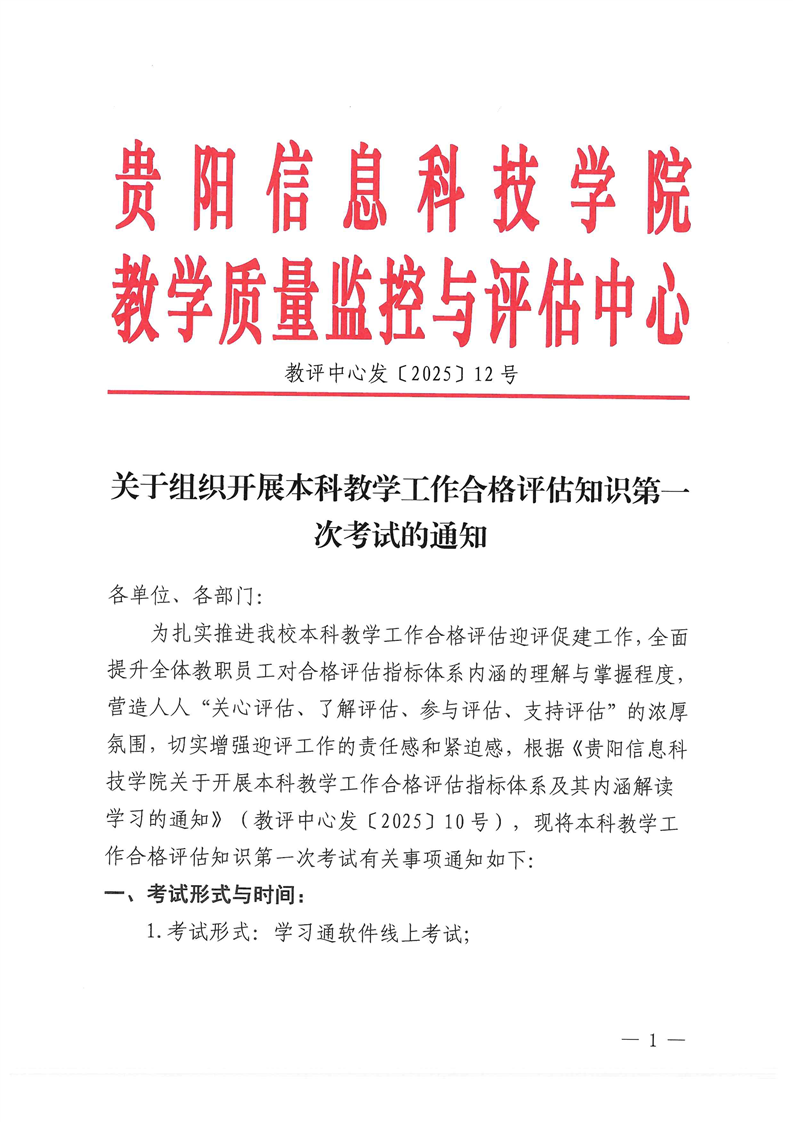 关于组织开展本科教学工作合格评估知识第一次考试的通知