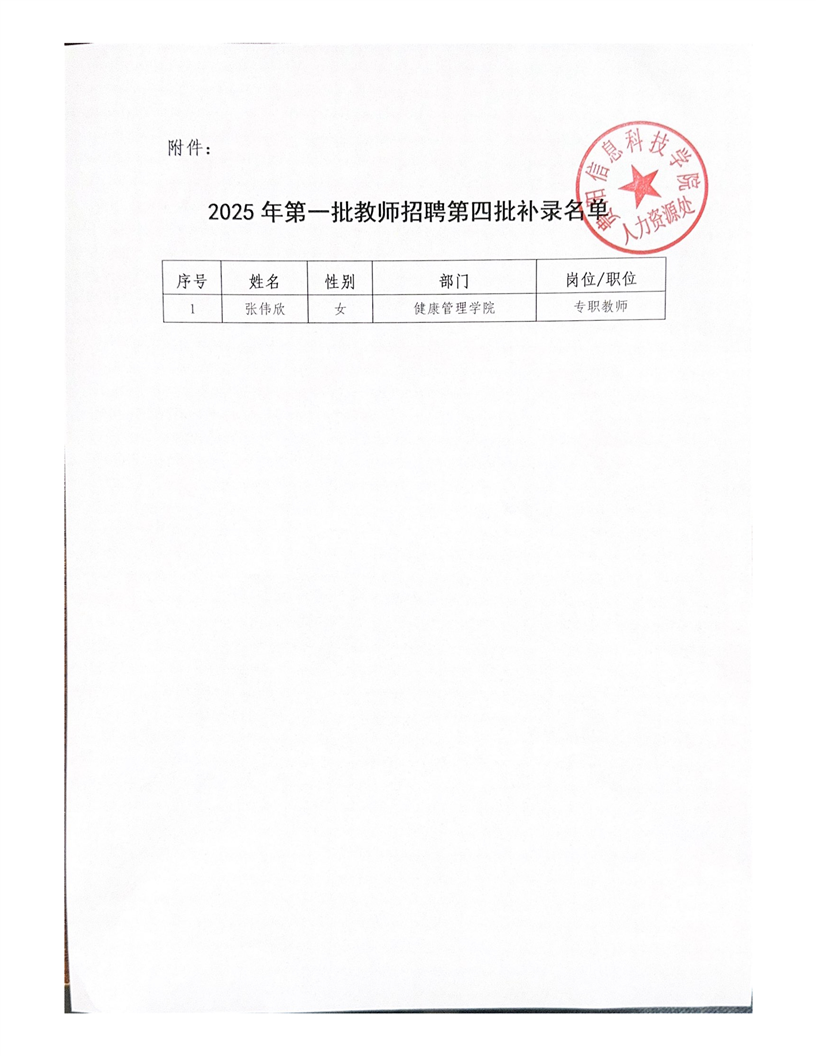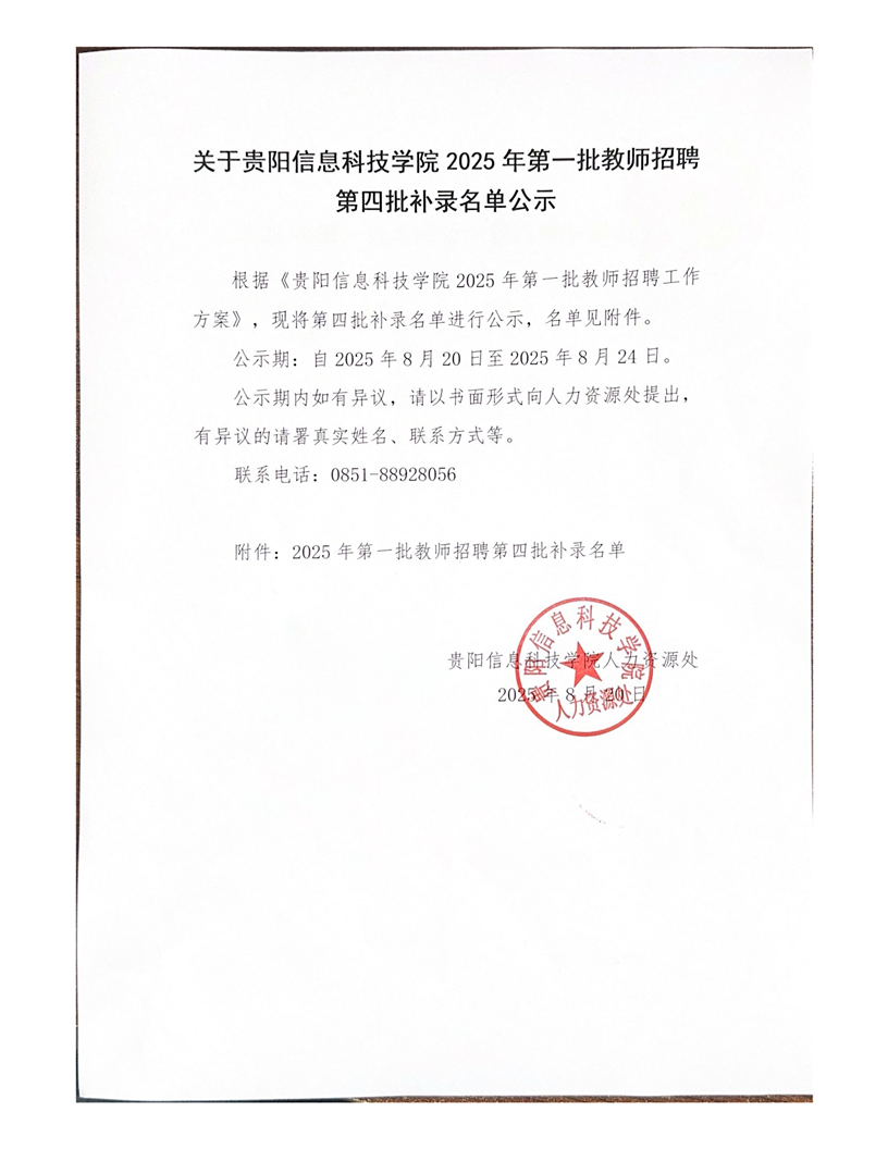 关于贵阳信息科技学院2025年第一批教师招聘第四批补录名单公示