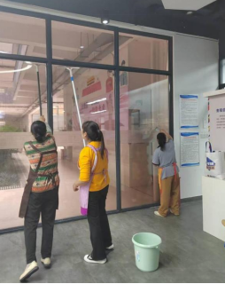 从暑假开始,后勤处便组织力量对全校教学楼实施深度清洁。工作人员细致清除公共区域顽固胶渍,彻底刮拭玻璃幕墙及窗框积尘,全面清理天花板蜘蛛网,并对卫生间进行深度消杀,逐一拆洗门窗、疏通地漏、清除瓷砖污垢、完成化粪池清掏和道路清理,确保教学环境焕然一新。