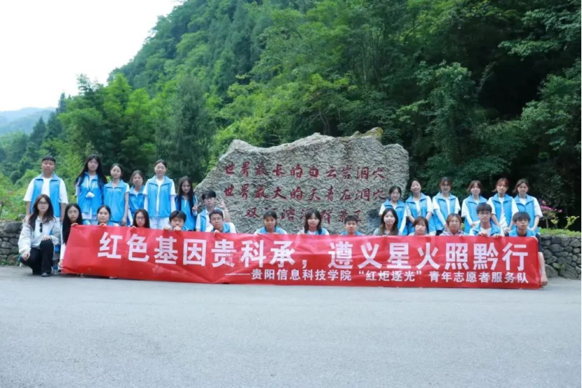 7月8日,贵阳信息科技学院“红炬逐光”青年志愿者服务队继续在遵义市的“三下乡”行程,先后前往了绥阳烈士陵园、诗乡陈列馆和双河溶洞景区,在不同的场景中感受历史、文化与自然的力量。