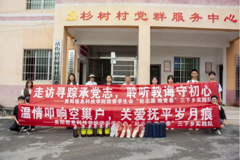 为深入学习贯彻党的二十大精神,传承红色基因,感悟老党员的初心使命,同时弘扬敬老爱老传统美德,关心关爱空巢老人。7月10日,我校团委学生会“赴志愿 致青春”三下乡实践队走进清镇市站街镇杉树村开展了一场意义深远的走访慰问活动,以走访慰问老党员的形式传承红色基因,汲取奋斗力量,以关怀空巢老人的举动传递爱心温暖,践行社会责任。