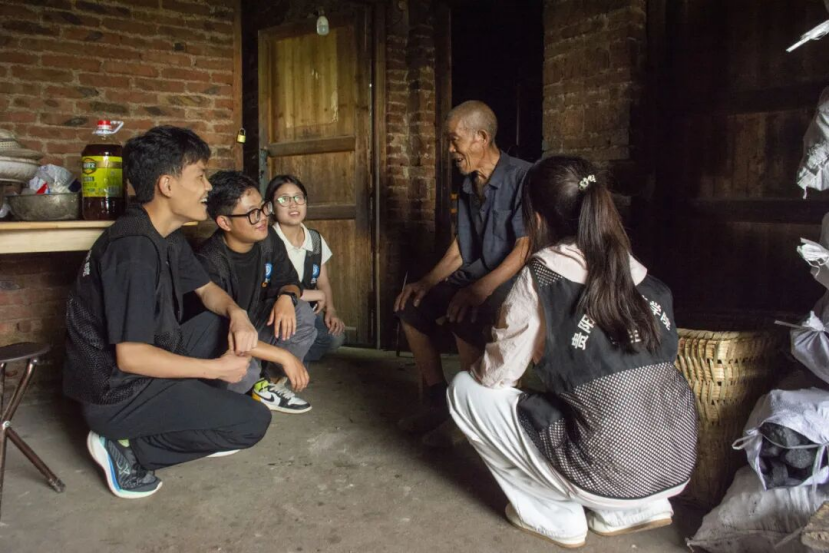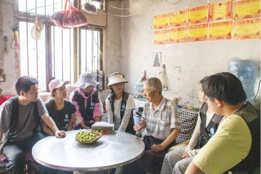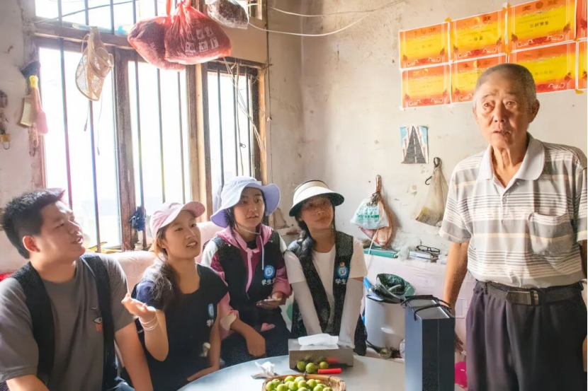 在村委会工作人员陪同下,8名实践队员怀揣敬意,首先走访了杉树村的老党员们,聆听奋斗故事,汲取精神力量。
