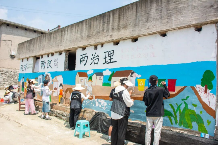 高堡村墙绘现场,队员们围绕“两清两改两治理”提笔创作。色彩与线条在墙面上舒展,一点点勾勒出乡村整洁宜居的新模样,让文明理念随画笔融入村容。