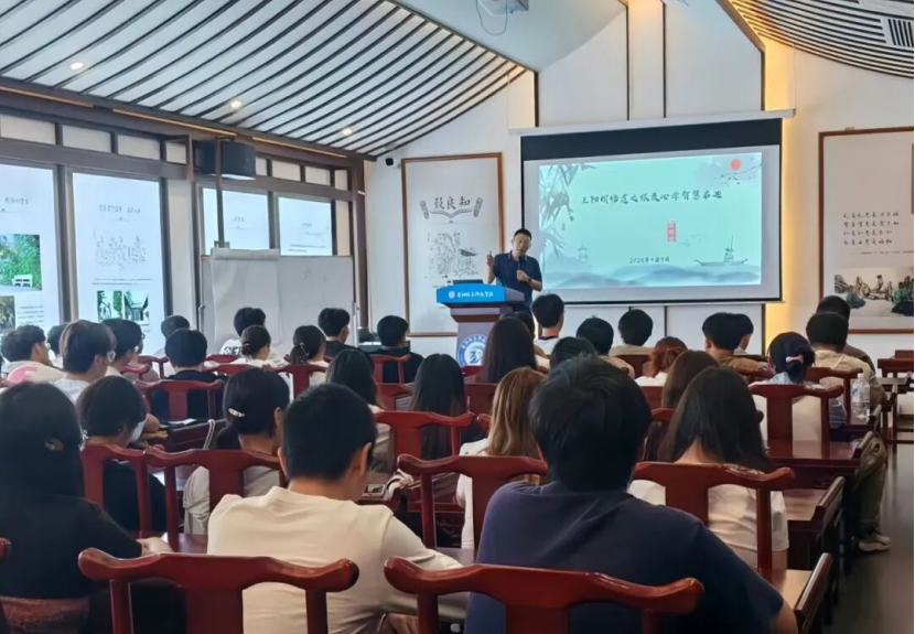 9月9日,“王阳明悟道之旅及心学智慧启迪”专题讲座在阳明书院心学馆举行。此次讲座由贵阳信息科技学院纪委书记、阳明书院执行院长黄晓儒主讲,为师生讲授阳明心学,领会传统文化的魅力,践行“致良知”“知行合一”的精神。八十余名学生参加了此次讲座。