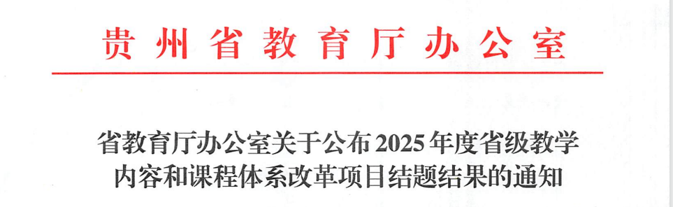 根据《省教育厅办公室关于公布2025年度省级教学内容和课程体系改革项目结题结果的通知》,我校2025年度顺利结题教改课题2项(2023年立项的另外4项均申请延期一年结题)。现将具体信息公布如下: