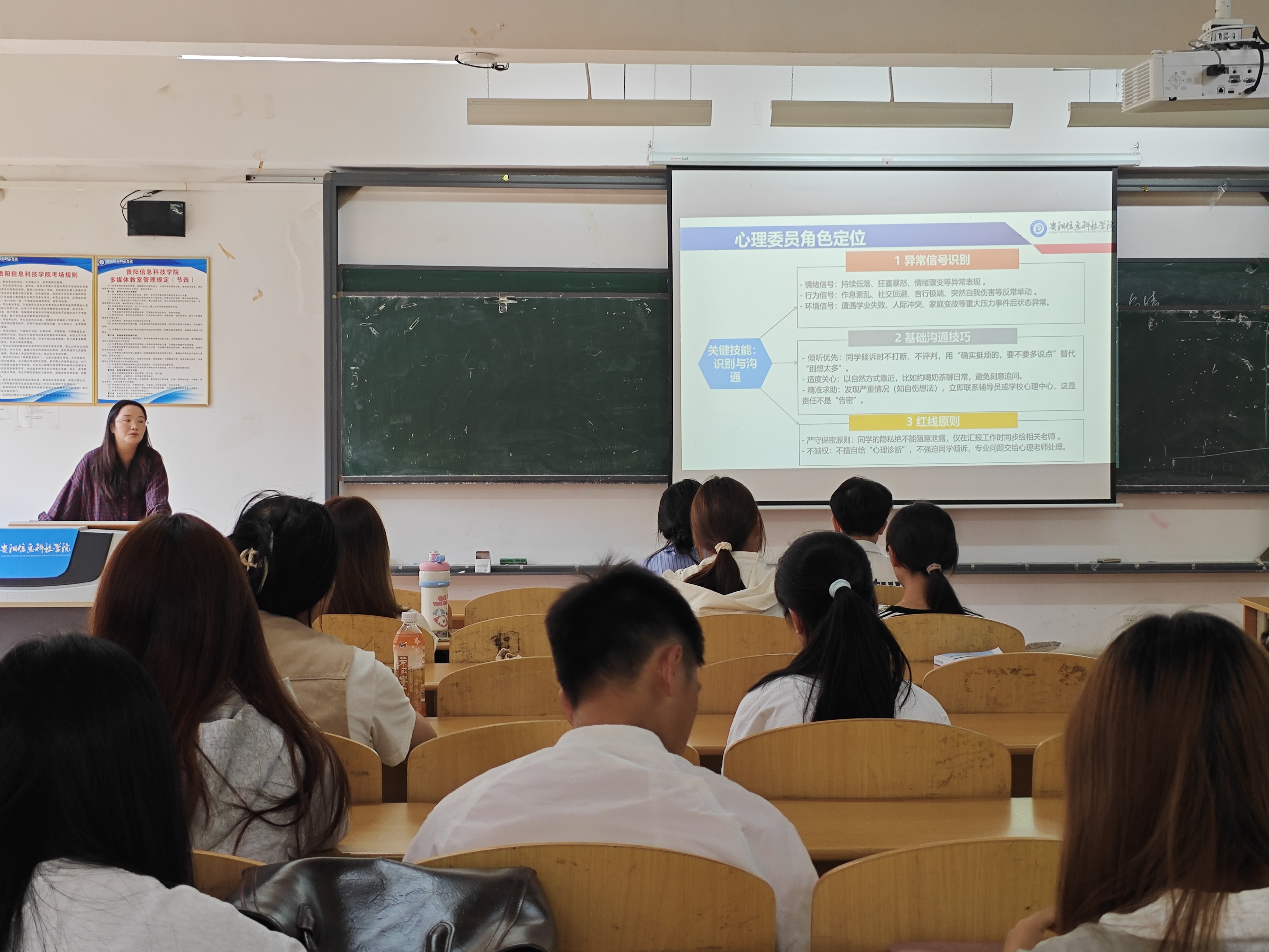 新闻网讯(供稿/供图 刘梦)2025年10月11日,贵阳信息科技学院经济管理学院组织召开了“‘心’光护航,赋能成长”2025级心理委员综合技能提升培训会。此次会议的目的在于明确心理委员的职责,提升其工作综合技能,以充分发挥他们在班级心理健康工作中的桥梁纽带作用。