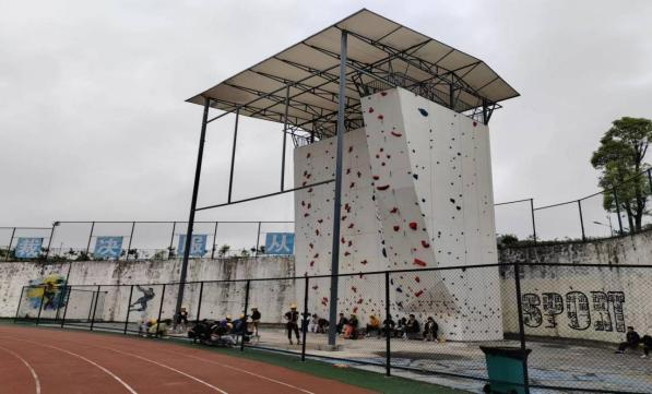 贵阳信息科技学院室外攀岩场的多样性和变化性,为学生打造了在岩壁攀登的方便性与乐趣性,人工岩壁是经过工程师的力学分析模拟了天然岩石环境,将天然环境中的不确定因素与危险因素排除,把人工岩壁带到校园中,使攀岩运动不再受气候条件影响,也避免了野外攀登的危险与不便。