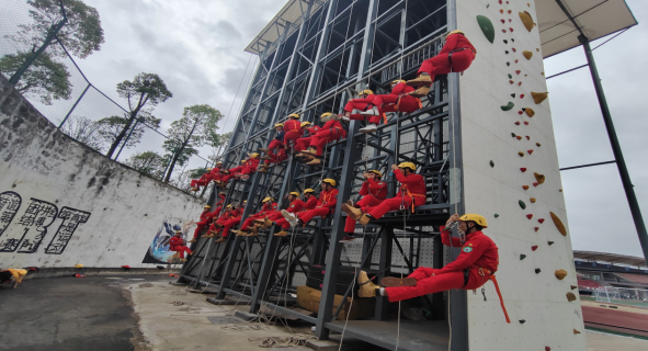 攀岩救援实训场是提高攀岩、救援人员绳索救援技术水平的重要场所,通过在这些场地的训练,可以确保攀岩、救援人员在实际救援中能够安全、高效地完成任务。攀岩救援实训场是专门为绳索攀岩、救援技术训练和实战演练设计的场所,位于攀岩背部,它们模拟了各种可能的救援环境,包括高空、山岳、水域等复杂场景。这些场地通常配备了专业的攀岩、绳索救援设备和安全措施,以确保课程教学及日常训练的安全性和实效性。