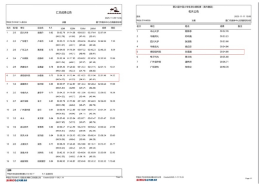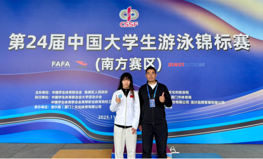 新闻网讯(供稿/供图 公共教学部)11 月 9 日,第 24 届中国大学生游泳锦标赛(南方赛区)在厦门奥体中心正式开赛。面对这项国内高校游泳领域的顶级赛事,我校首次派出代表队参赛,学子孙嘉璐在包健老师的科学指导下,凭借出色的竞技实力一路奋进,成功斩获 50 米仰泳第五名与 200 米混合泳第六名的亮眼成绩。
