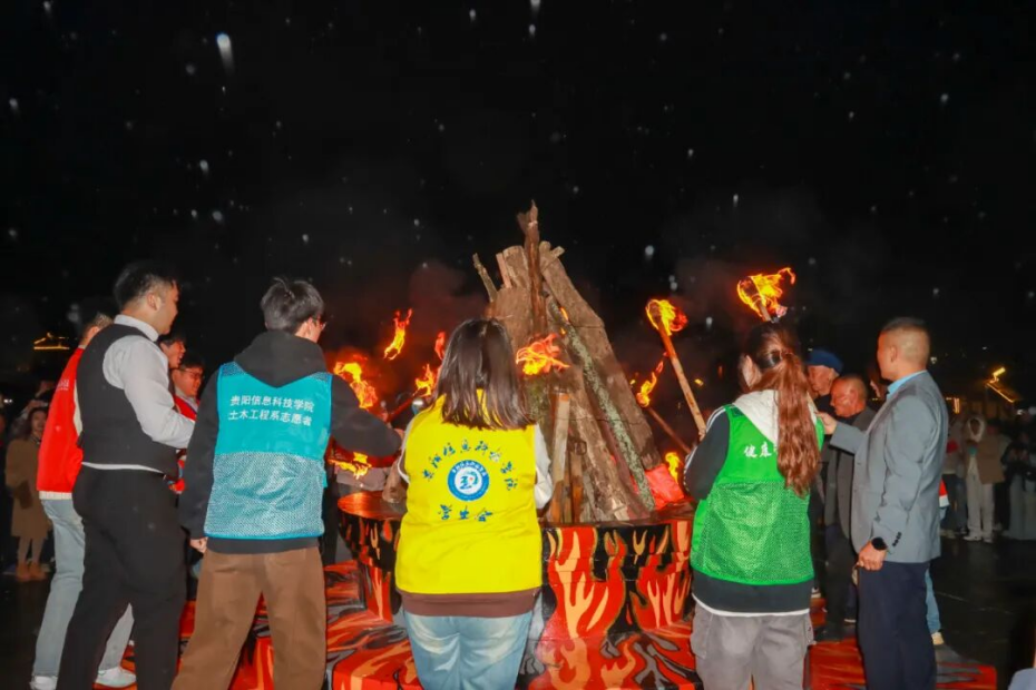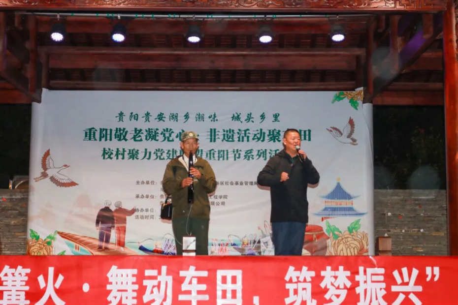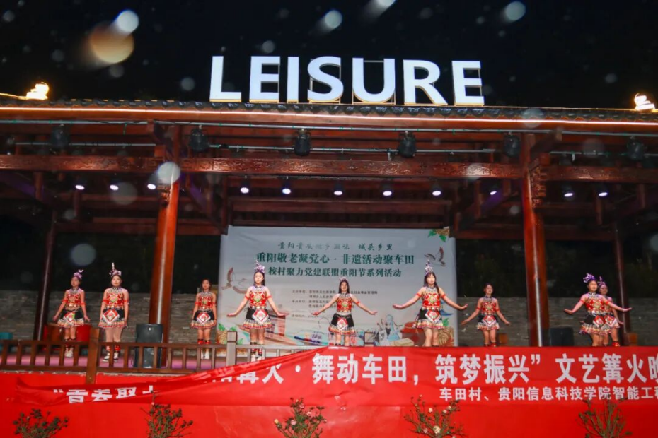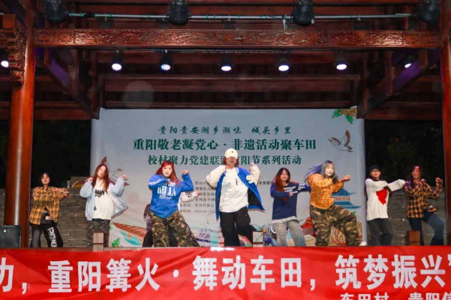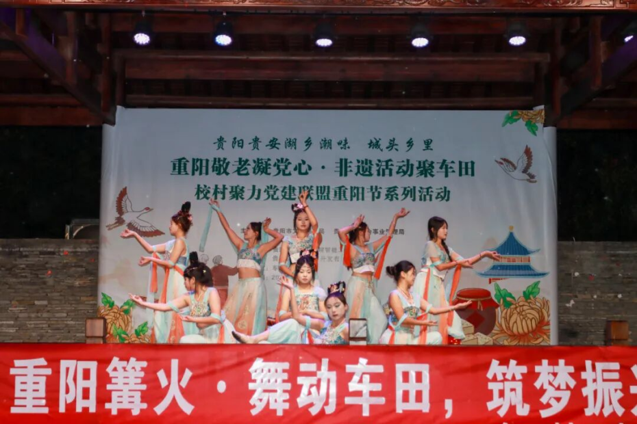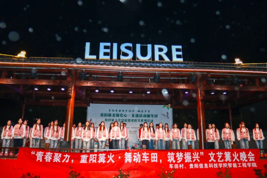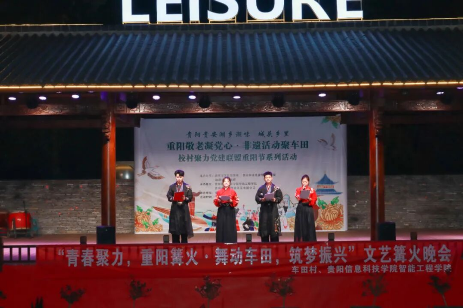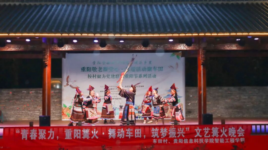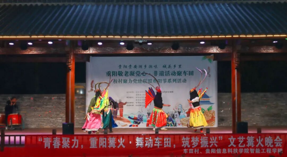 为传承中华民族尊老、敬老、爱老、助老的传统美德,10月29日,在重阳节来临之际,我校智能工程学院联合贵安新区湖潮乡车田村举办“重阳敬老凝党心・非遗活动聚车田”校村聚力党建联盟重阳节系列活动暨篝火晚会。校团委副书记(主持工作)罗一檾带领团委学生会代表、国旗护卫队、街舞社、民舞社等社团代表到场参加活动,共同点燃篝火,学子们献上民族国风与现代舞融合的精彩表演,在传承尊老爱老美德的同时,让村寨老人感受节日温暖与文化魅力,深化校村共建情谊。