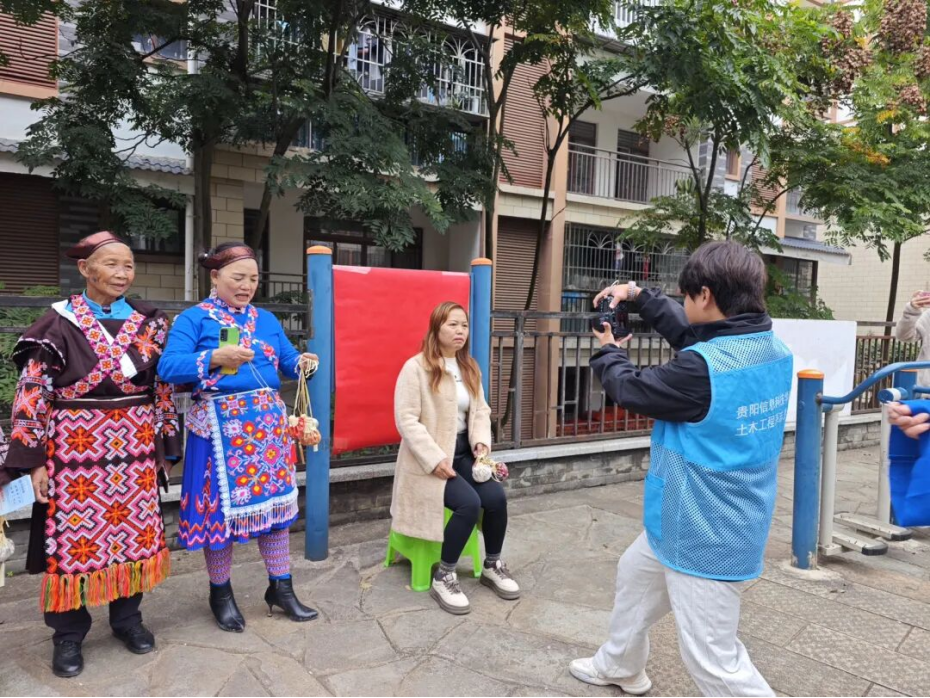 在欢声笑语中,一个个精美的香包诞生了,它们不仅散发着淡淡的香气,更承载着对老人健康长寿的美好祝愿,学生还化身摄影师,用镜头捕捉老人们的幸福瞬间,为老人们免费拍摄证件照,部分老年人还身穿盛装到场拍照,脸上洋溢着笑容。