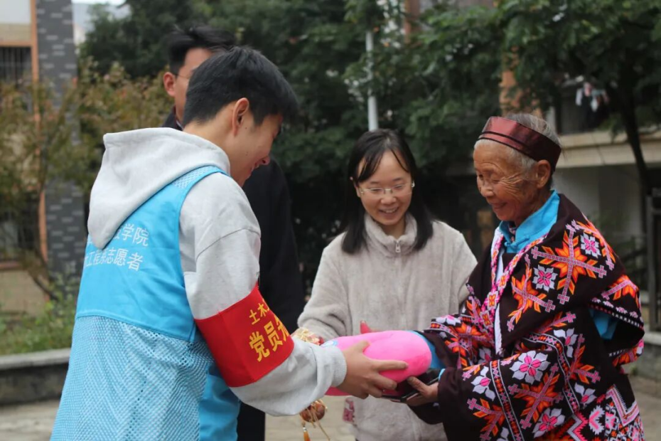 为弘扬尊老敬老的传统美德,促进校社深度融合,10月29日,我校土木工程学院师生走进贵安新区党武街道摆门社区,开展了一场温馨、富有意义的“重阳敬老,青春报到”主题系列活动,为社区老人送上的特别关怀。