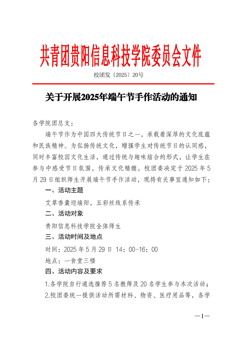 关于开展2025年端午节手作活动的通知