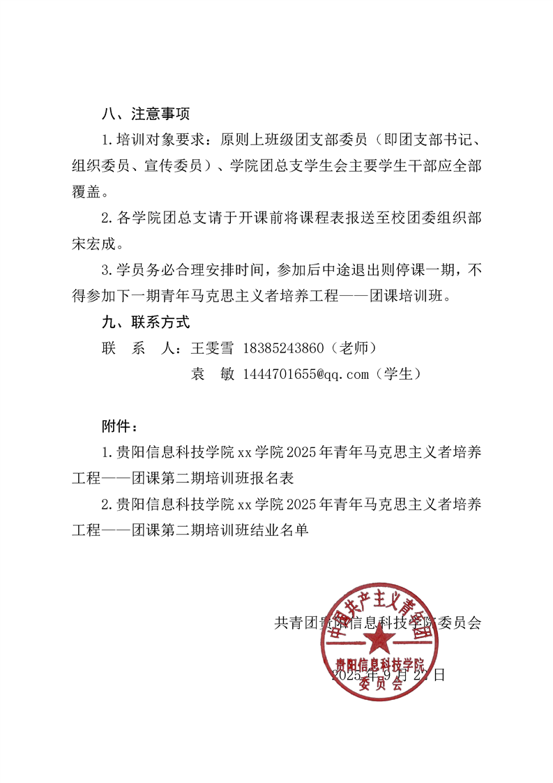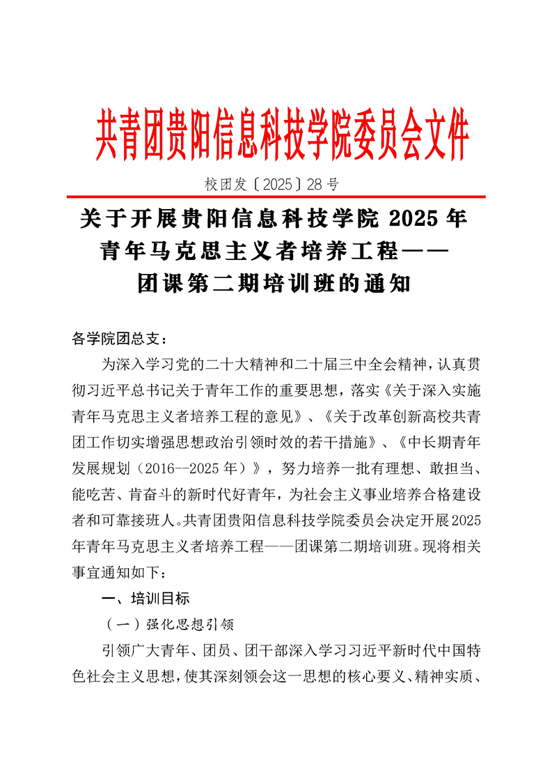 关于开展贵阳信息科技学院2025年青年马克思主义者培养工程——团课第二期培训班的通知