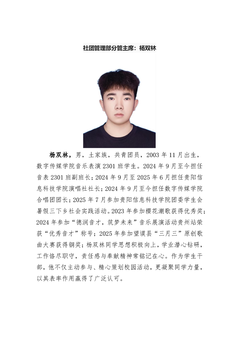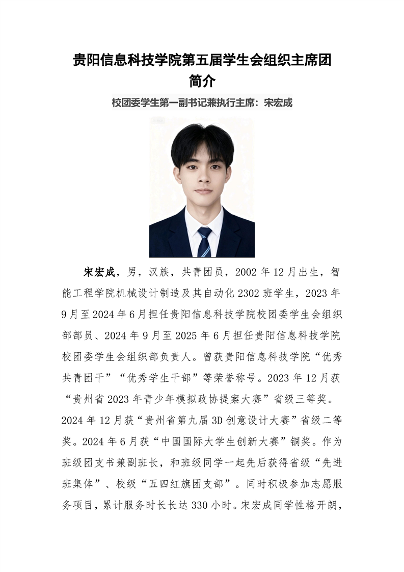 贵阳信息科技学院第五届学生会组织主席团简介