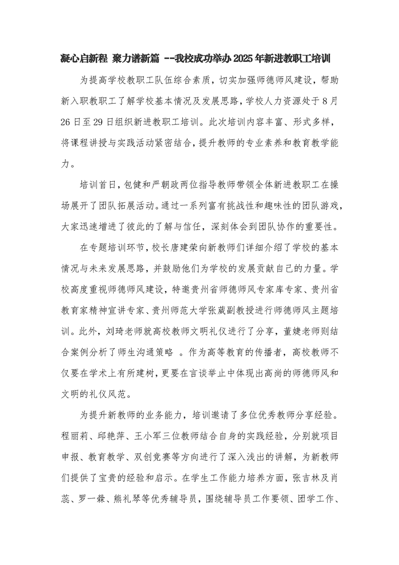 凝心启新程 聚力谱新篇 ——我校成功举办2025年新进教职工培训