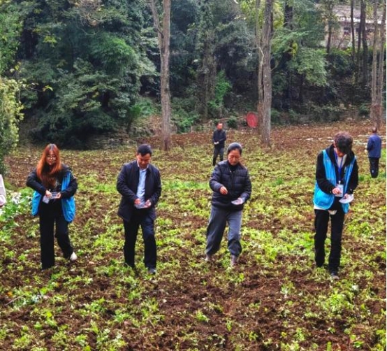 活动现场,党员同志们身着志愿服,热情高涨、分工协作。在当地村民的指导下,大家翻土、整地、播种、覆土,一系列动作有条不紊。院长、总支书记带头示范,党员同志们紧随其后,每一道工序都做得认真细致,田间地头呈现出一派热火朝天的劳动景象。