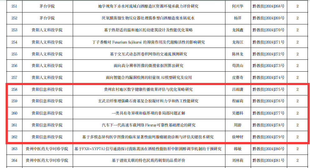 2024年1月,由贵州省教育厅科技处组织的2024年度自然科学研究项目(青年项目)中,我校共获立5项项目。