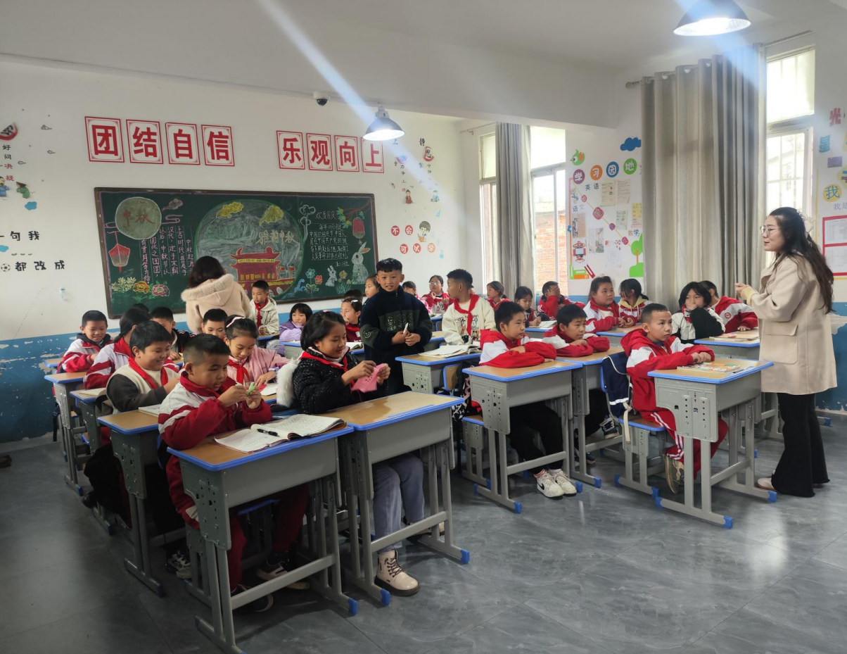 在开展活动前期,圣泉小学该班班主任利用学习通进行问卷搜集、通过对小学生进行人格测试进行人物画像,对孩子们进行更深层次的了解。在日常授课中,圣泉小学李老师也会使用AI知识图谱、思维导图对每章节知识点进行总结、归纳,并且为每一位同学都生成了AI助教及时为学生答疑解惑。在职场照片播放结束后,李金霞老师拿出人资2301班同学为小学生们折的手工作品,每一张折纸写满了对孩子们的祝福。一代人与一代人通过文字的方式心意相通、温暖彼此。AI生成的是一张照片,“但背后却是班主任李老师、贵阳信息科技学院的周安萍老师,以及人力资源管理2301班全班同学的心意”。