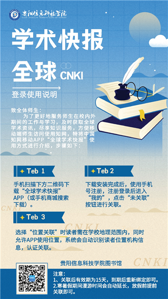 即日起,我校师生可通过关联机构账号,在手机端免费使用中国知网的海量学术资源,随时随地助力您的学习与科研,具体