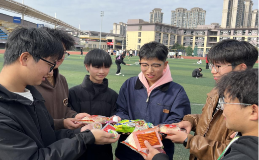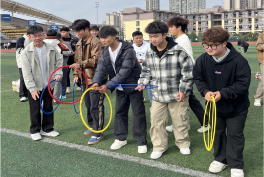 活动以“团结互助、愉悦身心”为核心,精心设置“套零食”“你来比划我来猜”两大趣味互动项目。“套零食”环节中,同学们以寝室为单位有序列队,瞄准目标精准投掷套圈,现场欢呼声、喝彩声此起彼伏。部分同学精准命中心仪零食,第一时间与身旁同学分享成功的喜悦;另有同学虽未能命中目标,但在同伴的加油鼓劲中坚持尝试,充分展现了互助包容的班级氛围,现场既热烈活跃又温馨融洽。