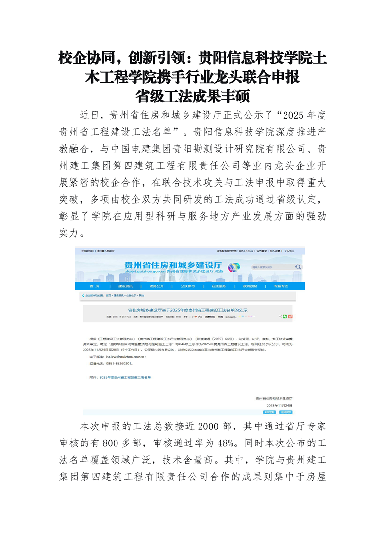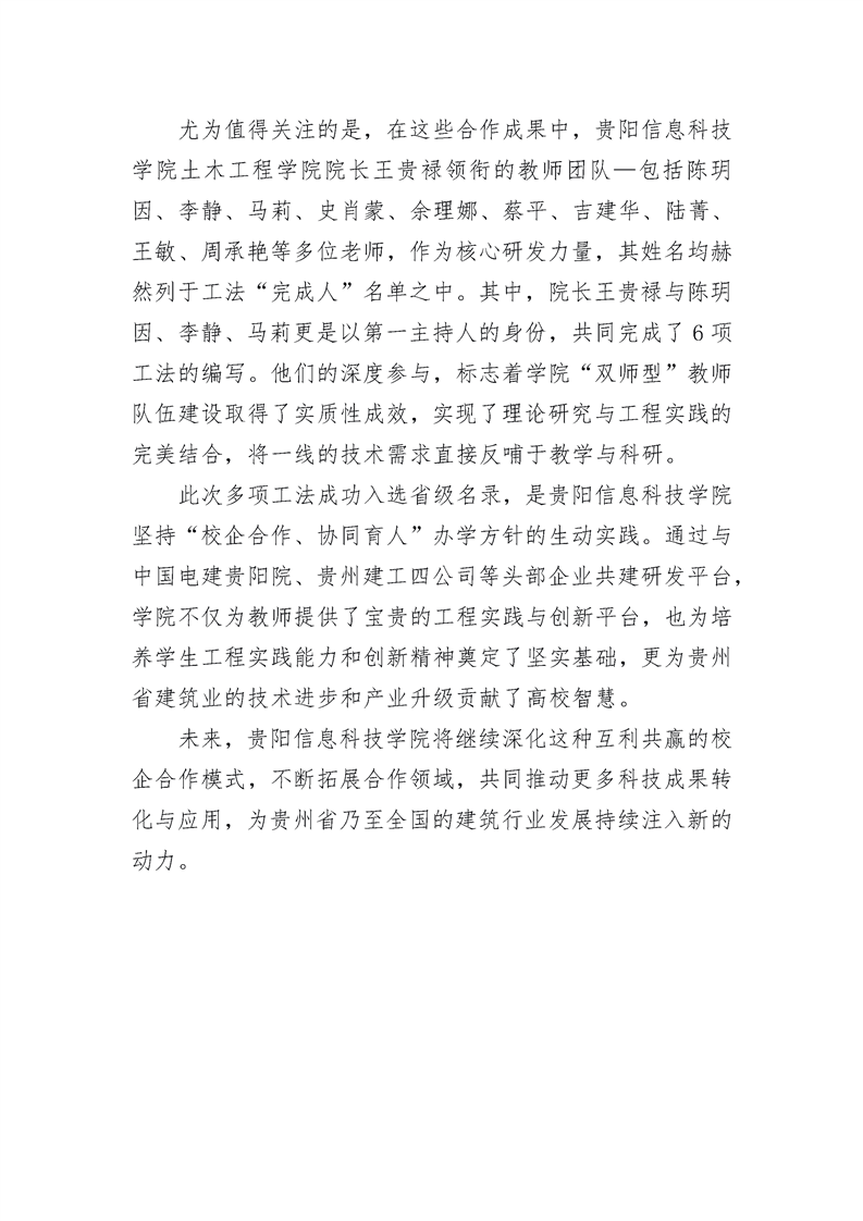 校企协同,创新引领:贵阳信息科技学院土木工程学院携手行业龙头联合申报 省级工法成果丰硕