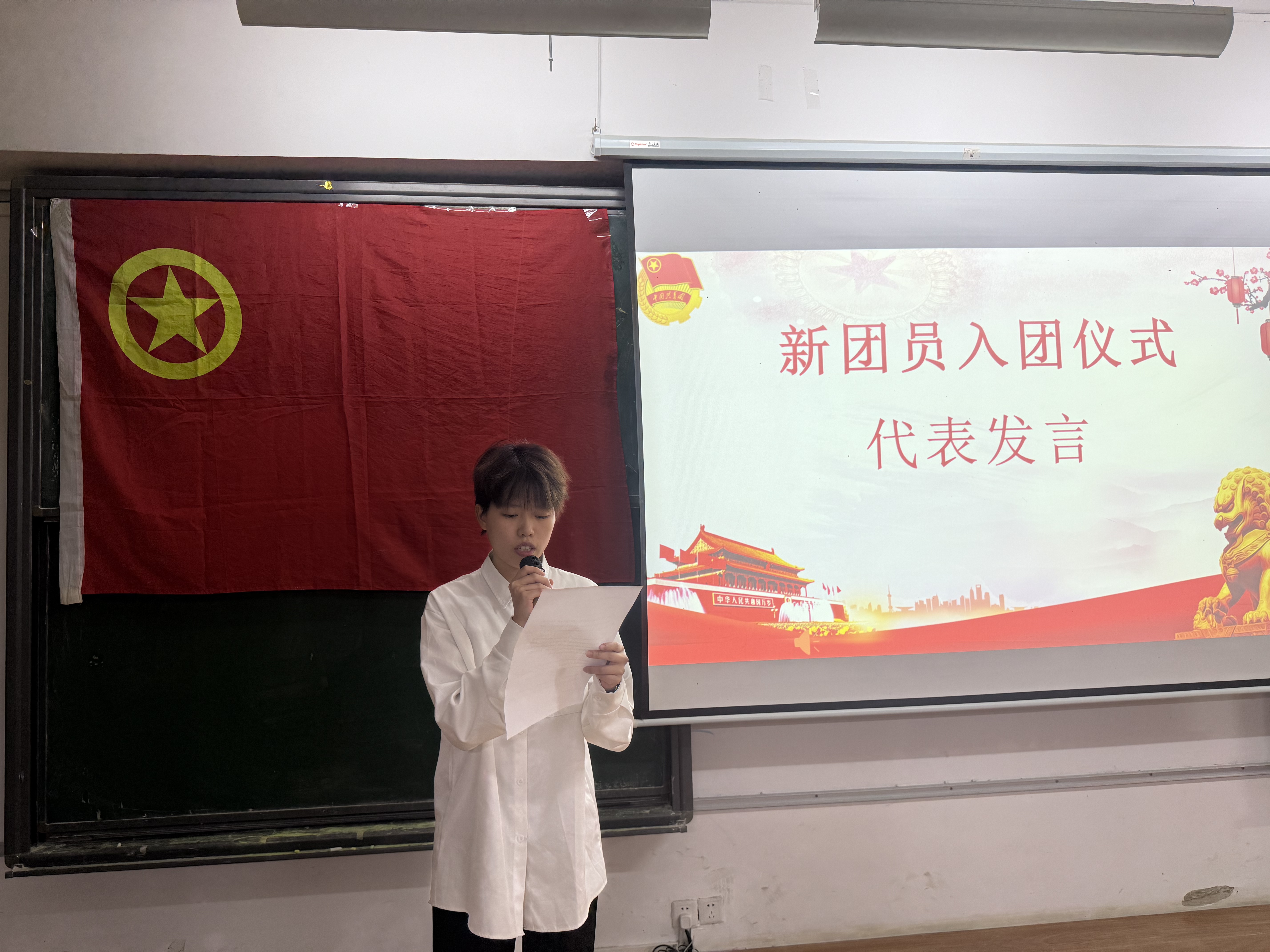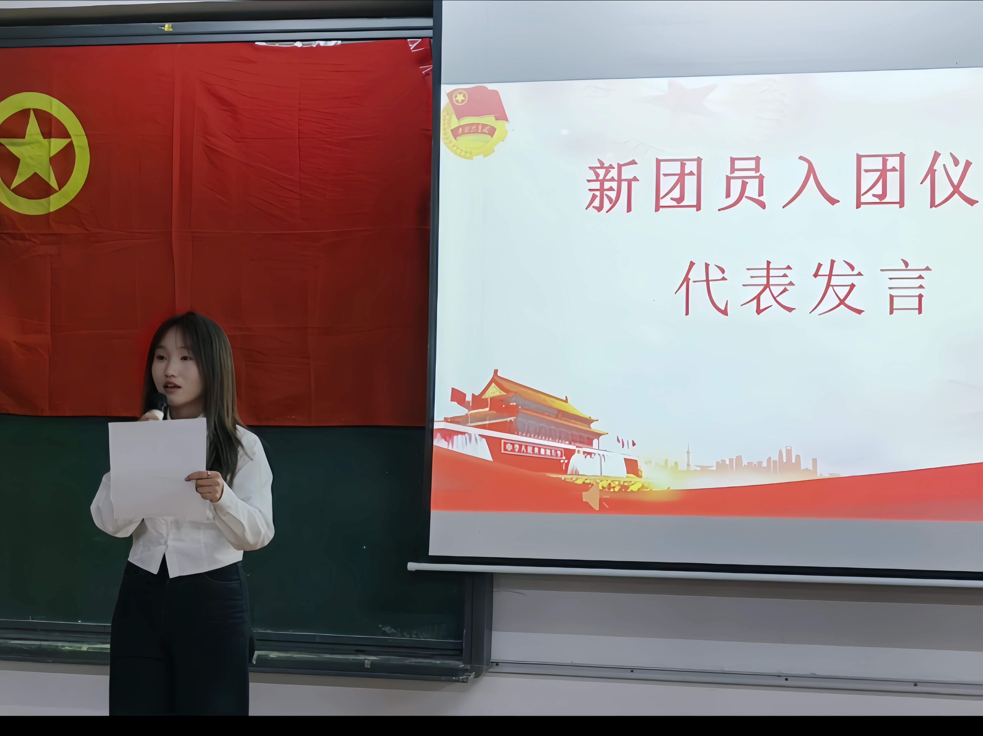 新团员代表魏德琴在发言中指出:“我将以入团作为新的起点,在学习上勤奋钻研,在生活中严格自律,在校园活动和社会实践中主动担当。我会以‘明理厚德,崇实担当’的校训为指引,以‘经世管智,德技双修’的院训为准则,让青春在奋斗中绽放出绚丽之花。”随后,优秀共青团员代表林婷婷同学分享了自己在经济管理学院团内生活的成长经验,鼓励新团员以榜样为参照,在实践中践行团员的责任与使命。