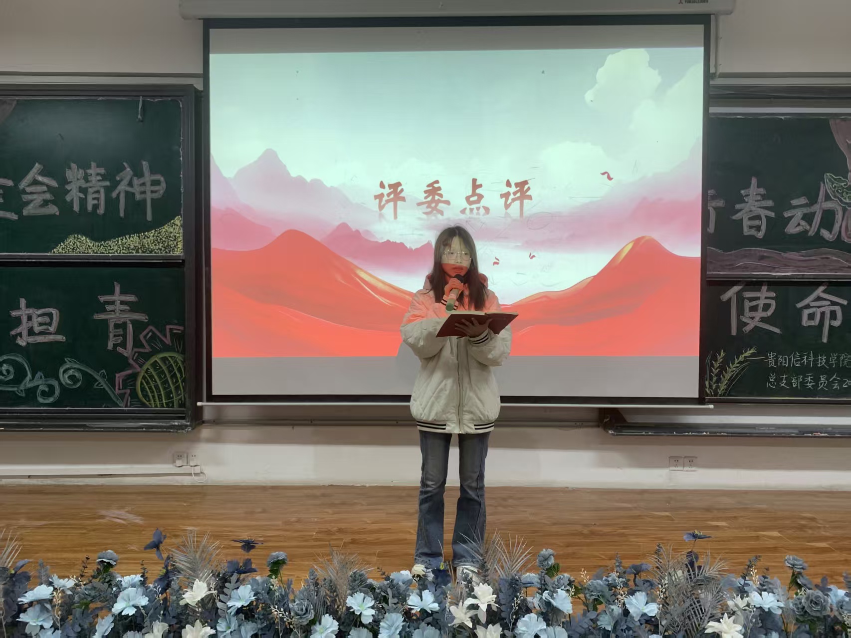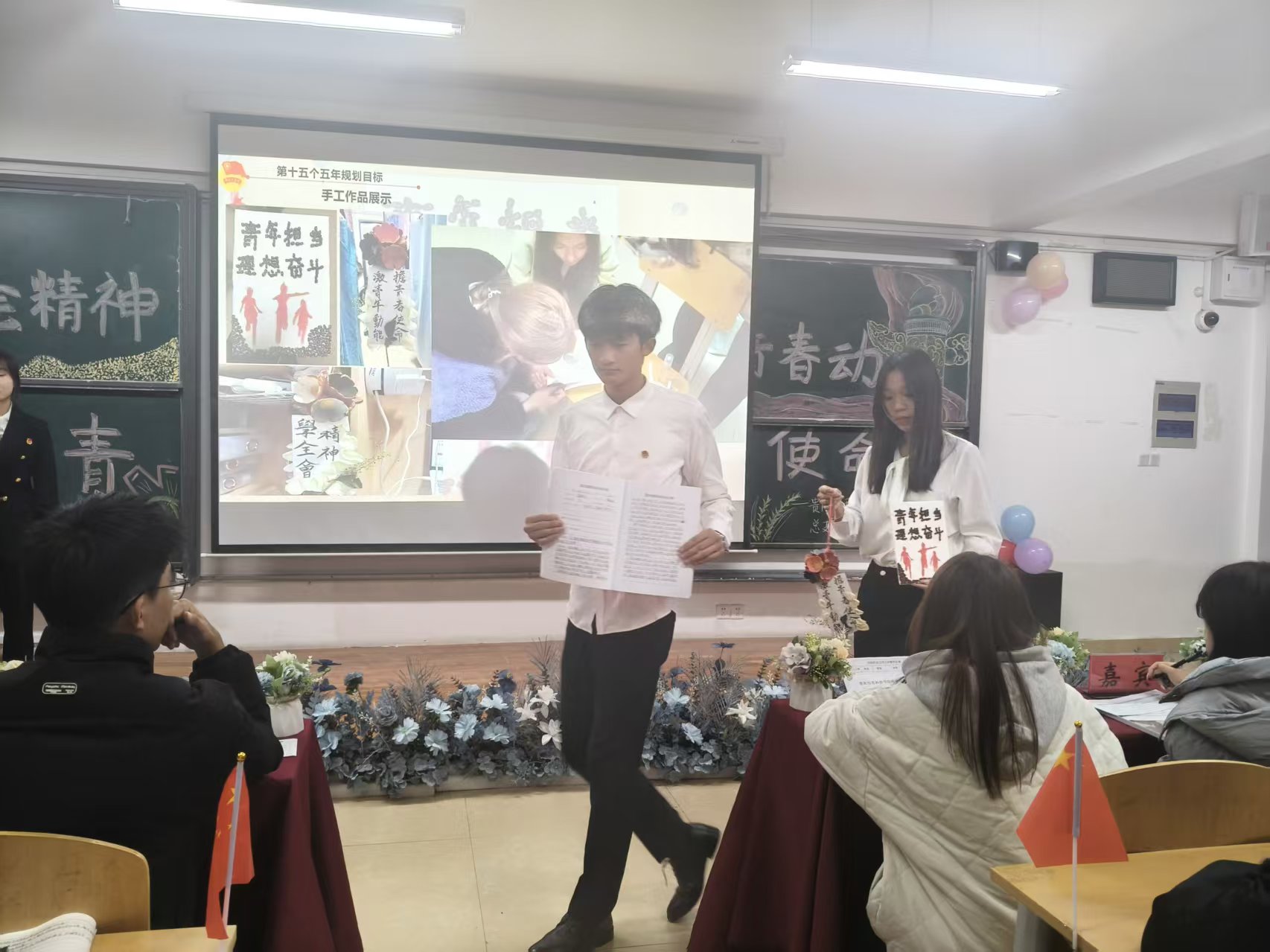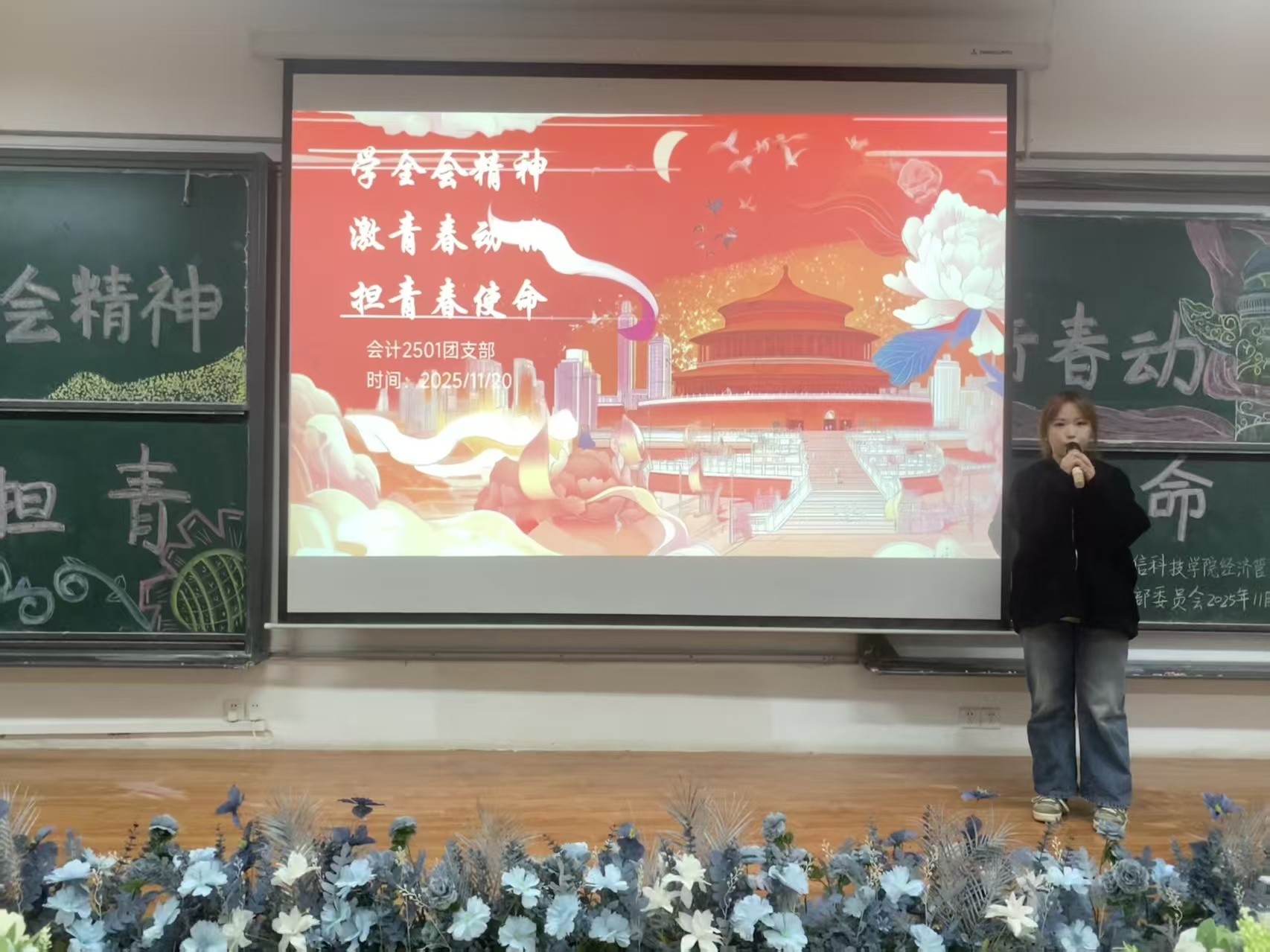 活动中六个团支部以PPT汇报、视频展示等形式依次上台汇报。工商2401团支部以“青年担当·理想奋斗”为核心主题,将全会精神融入创意手工作品设计。电商2501和会计2501团支部的汇报总结全会精神活动成效,反思不足并明确后续改进方向,以青春使命号召收尾,尽显青年热忱。工商2502团支部的PPT展示中生动呈现了全会精神“内化于心、外化于行”的精神风貌,充分展现新时代大学生的责任与朝气。