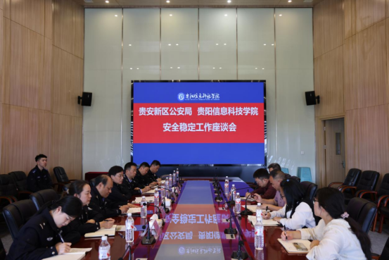 新闻网讯(供稿/供图 保卫处)4月9日上午,贵安新区公安局党委副书记、政委李乐启率相关部门负责人,深入我校就校园安全稳定工作开展专题座谈会。学校纪委书记黄晓儒出席会议,党群工作部、学生工作部、保卫处、后勤处等相关部门负责人参加会议。