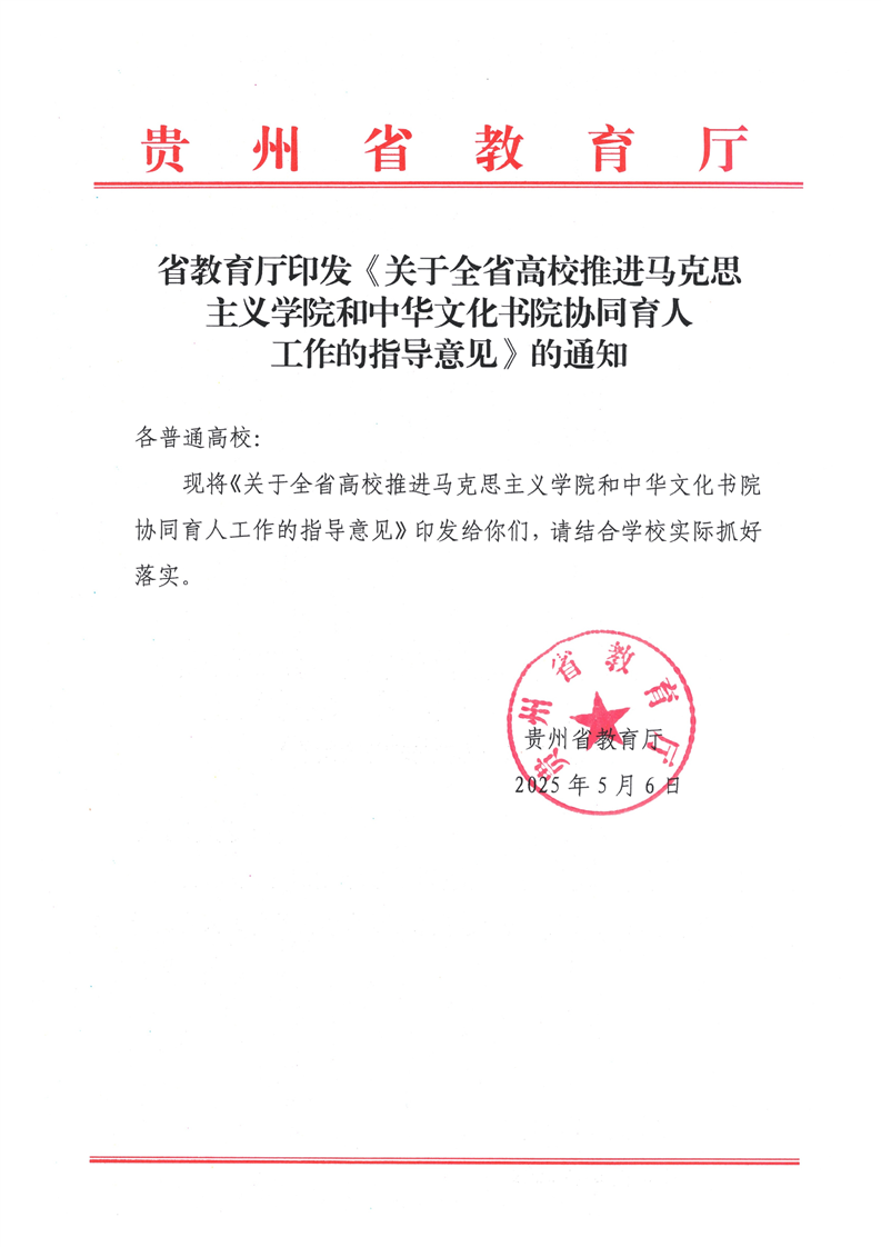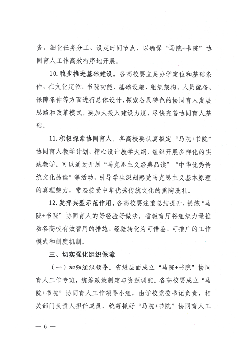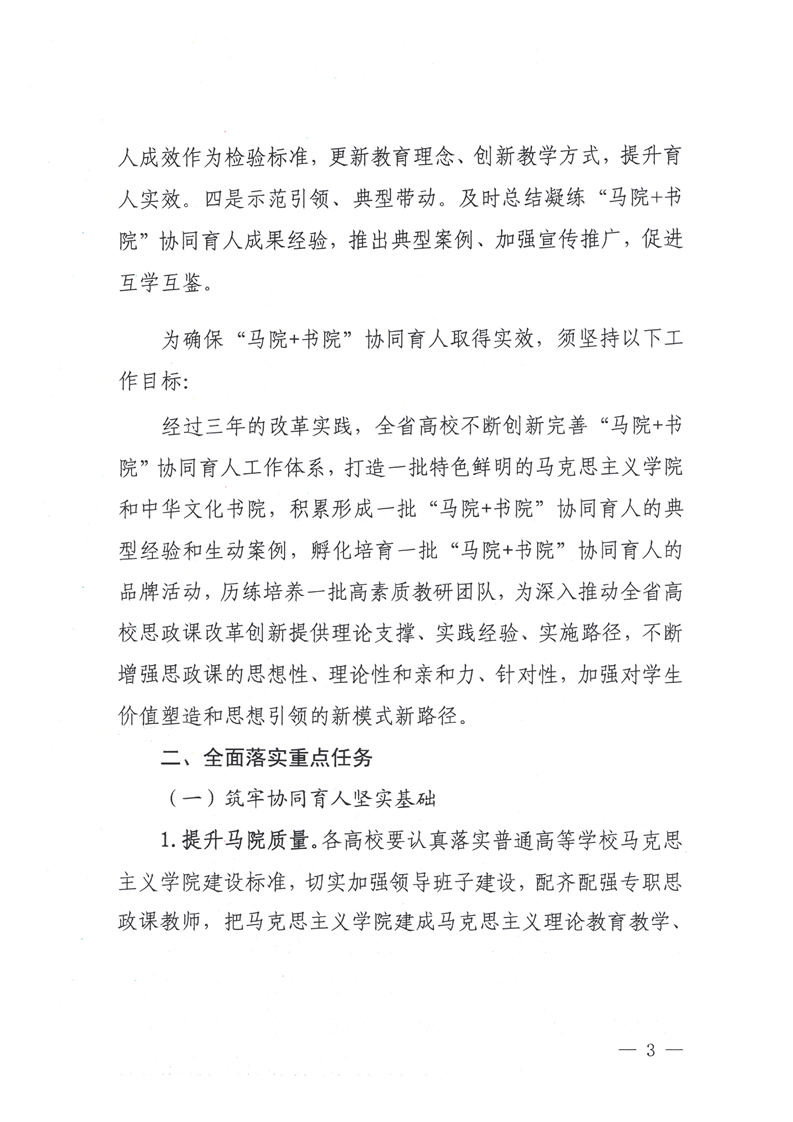省教育厅印发《关于全省高校推进马克思主义学院和中华文化书院协同育人工作的指导意见》的通知