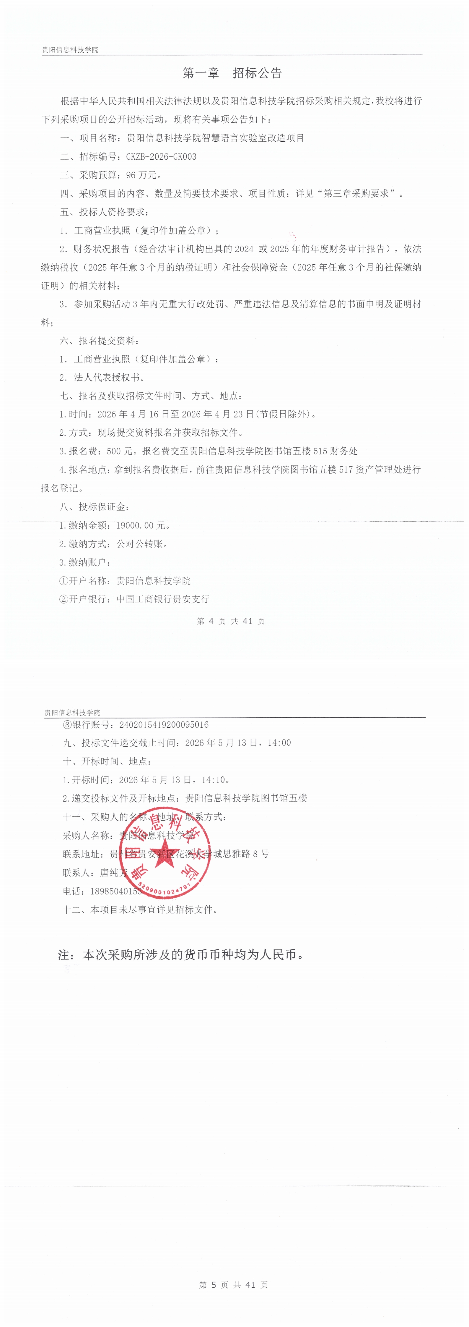 贵阳信息科技学院智慧语言实验室改造项目项目招标公告.pdf