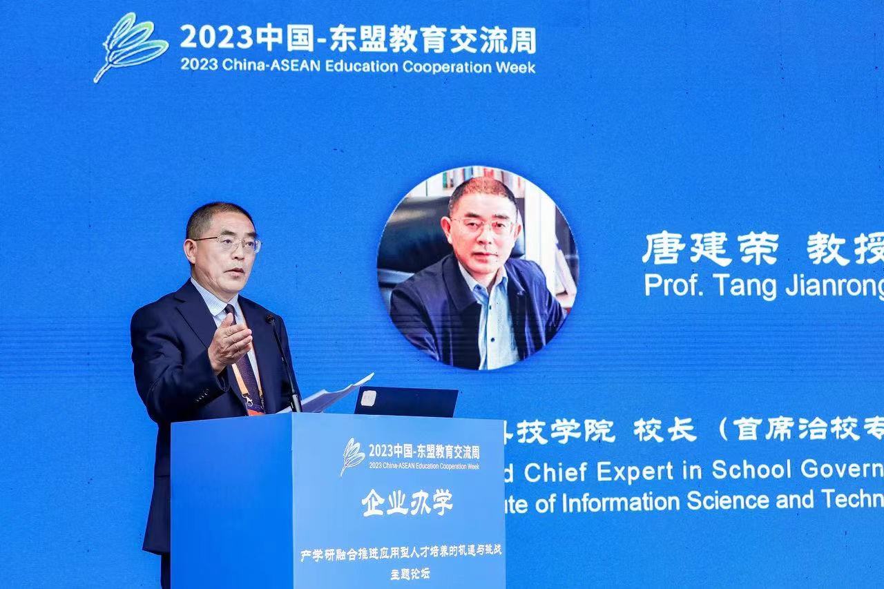 As part of the events during the Opening Ceremony for the 2023 China-ASEAN Education Cooperation Week, Forum on Opportunities and Challenges of Professional Talents Training Facilitated by Industry-University-Research Integration for Enterprise-running Universities and Colleges kicked off on August 28th at Guiyang Institute of Information Science and Technology, attracting experts and scholars from universities and colleges, representatives from research institutions and government, home and abroad. Countries ranged from Thailand, Malaysia, Myanmar, Philippines to Timor Lorsa’e. The forum is aimed to discuss and explore innovative ways to train and cultivate application-oriented talents so as to enhance international exchange and cooperation with ASEAN countries.
