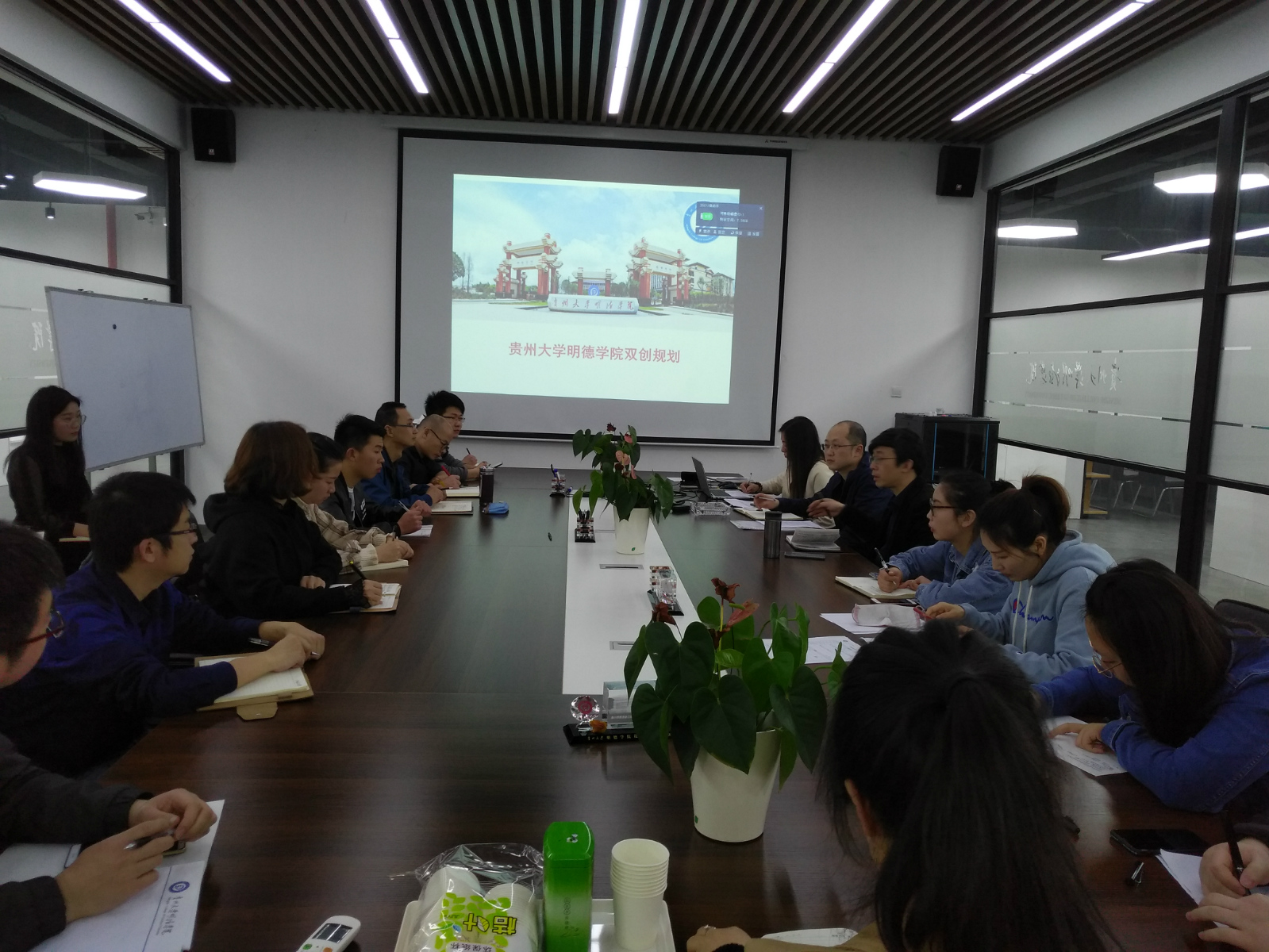 另外,双创办主任夏梦对贵州大学明德学院双创规划及工作进行了介绍,内容包括:学校基本情况、各系部简介、双创总体思路、双创五年规划、学院双创工作组织架构、双创课程体系、师资体系、空间体系等8大体系、双创1630计划、2019年主要工作及三月工作完成情况,各系双创工作要求等内容。