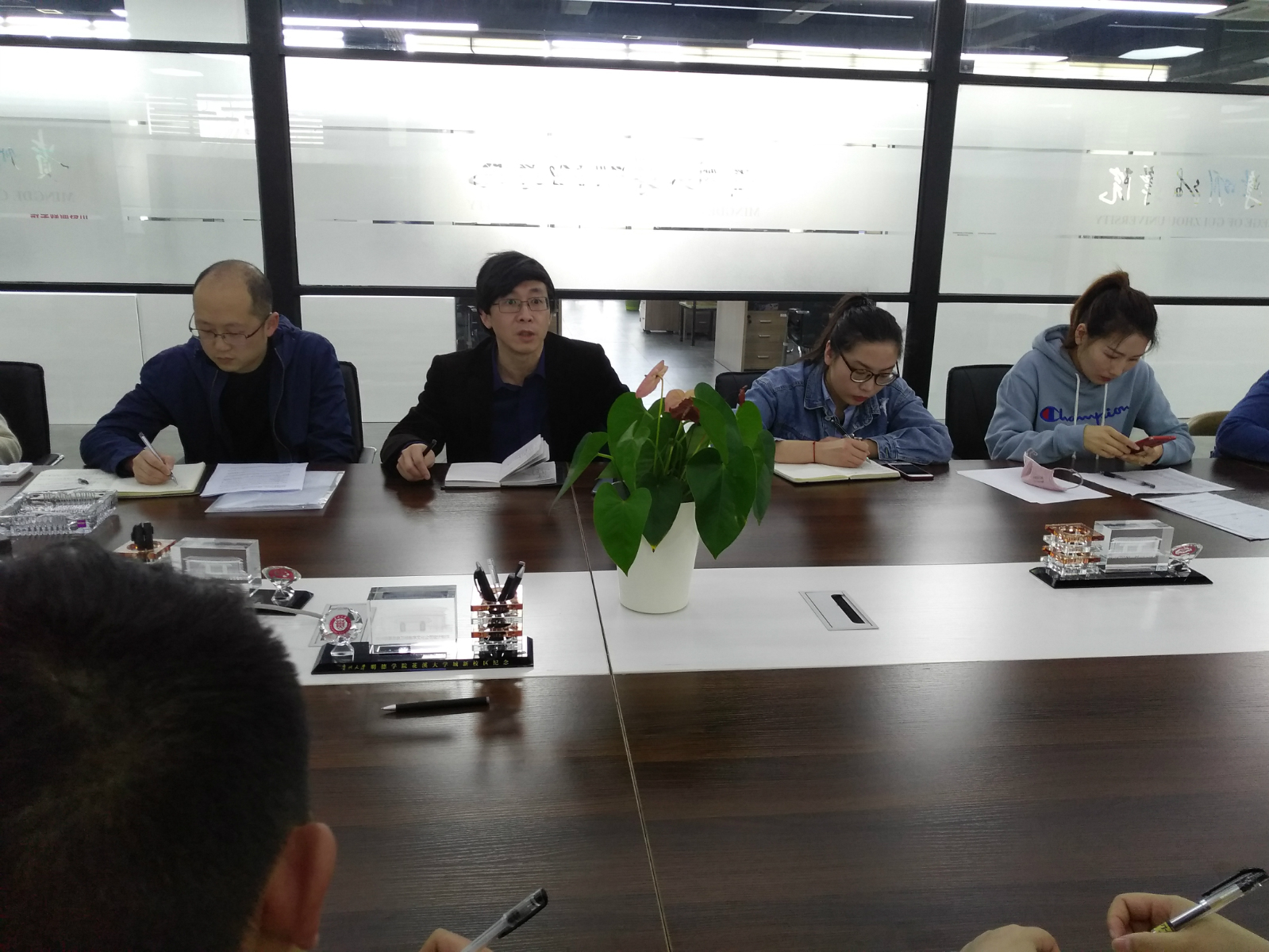 最后,副院长杨波对贵州大学明德学院4个对外合作主体(公司)、双创1630计划分别进行了介绍并做会议总结。要求:(1)根据双创办近期工作要求,各系部老师及有关双创人员按会议纪要要求配合双创办完成工作目标。(2)根据学院创客中心近期工作内容,创客中心负责配合各系部老师,协调学员报名登记和场地安排有关工作。(3)针对学院双创工作实际情况,由双创办组织就近与贵安数字经济产业园各有关企业开展双创项目合作。同时各系部老师针对学院双创工作规划、管理办法、工作计划及安排进行充分的交流,提出各自建设性意见。双创办表示,针对各位老师提出的问题将进行精心的研究,尽快出台有关双创工作政策及办法。