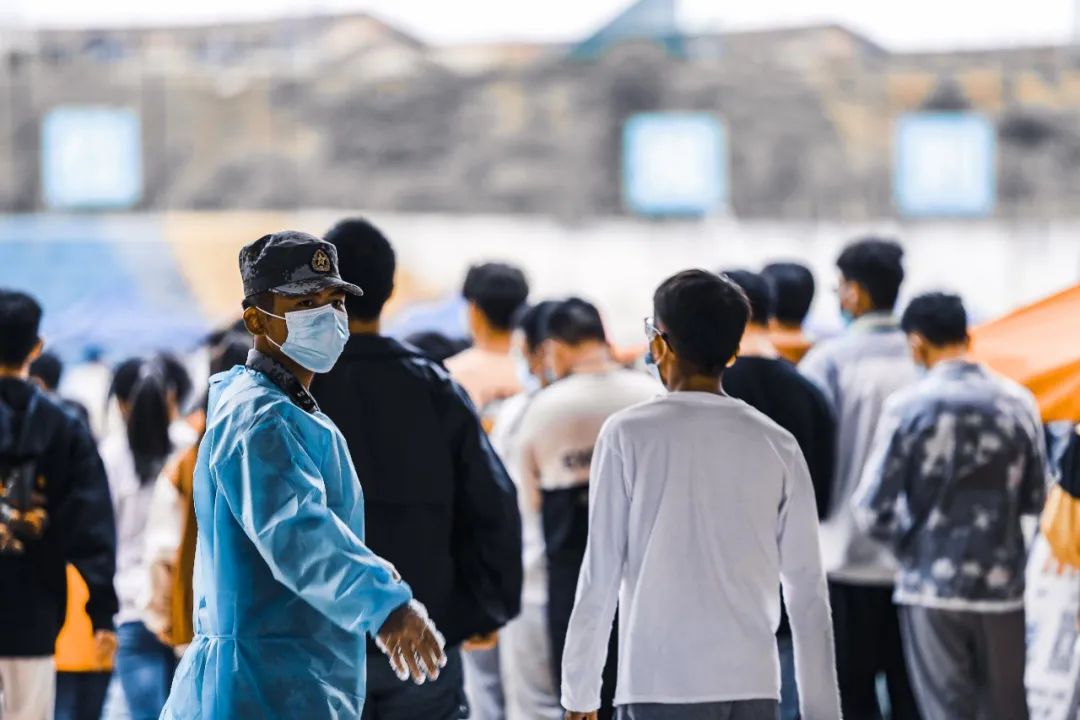 见“疫”勇为,展军人风采。我校本次疫情防控工作有两个特殊的群体,他们是承担我校大一新生军训任务的军训教官和校企合作的救援学员队伍。此次疫情,恰逢学校新生入学军训,军训开始仅几天便爆发疫情,所有军训教官留在学校参与到疫情防控工作中。教官们是退役军人,年龄基本在20岁出头,但军队生活的宝贵经历造就了他们强健的体魄和坚韧不拔的精神。在学校疫情防控工作中,这些散发着军人气质的教官是预检台老师的重要辅助力量,他们帮助操作错误的学生正确使用核酸检测程序,一丝不苟清点人数等。一次全员核酸检测需5-6个小时,在这期间,教官们穿着闷热的一次性防护装备从头站到尾,没有替补没有轮班,仍然没有一句抱怨。他们用热情和无私的爱助力学校疫情工作顺利开展,展现新时代军人风采。