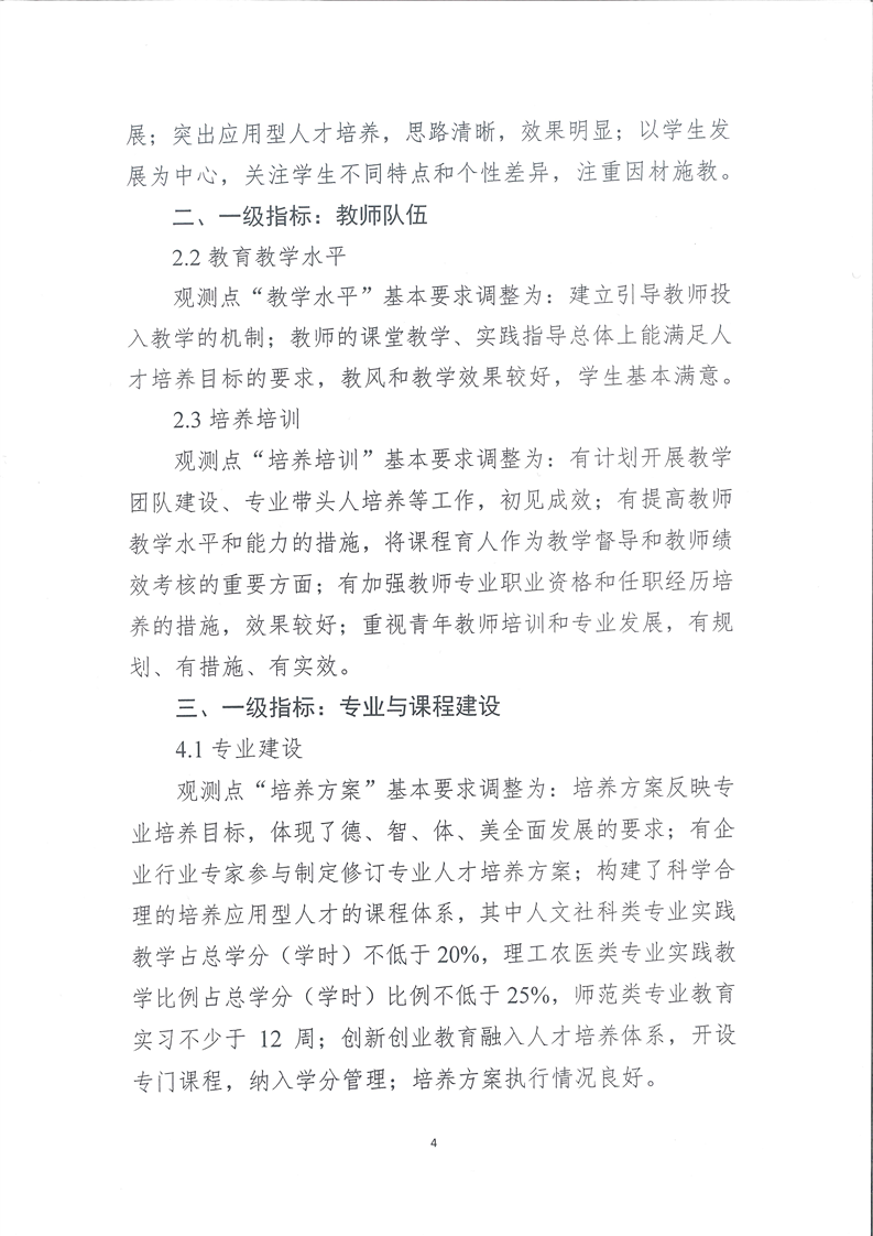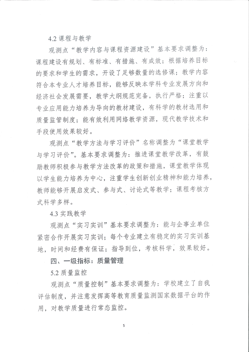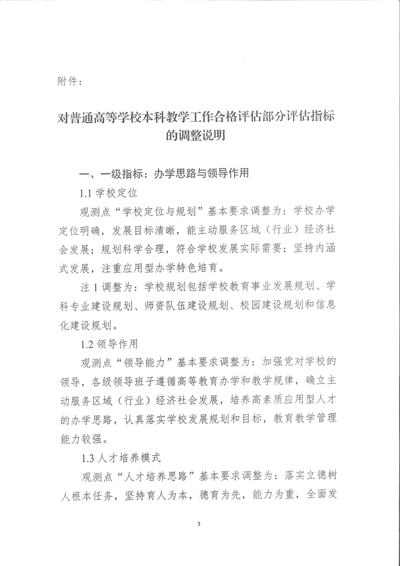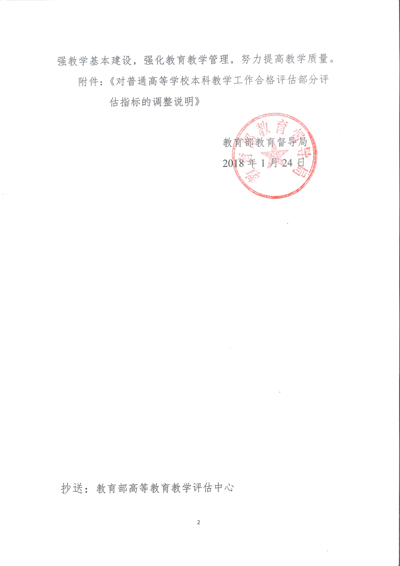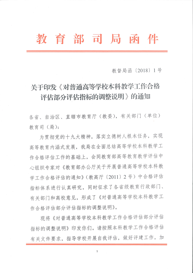 关于印发《对普通高等本科教学工作合格评估部分评估指标的调整说明》的通知(教督局函【2018】1号)