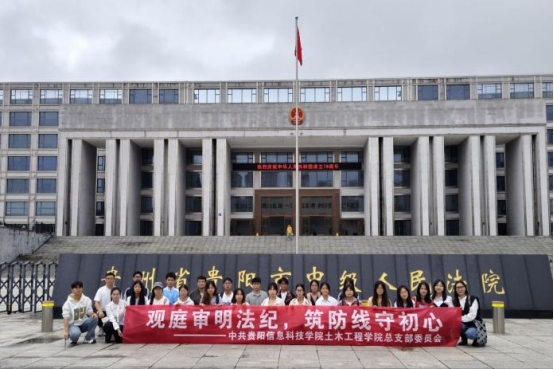 为扎实推进党纪学习教育常态化长效化,切实增强师生党员的法治意识和风险防范能力,10月16日,我校土木工程学院党总支组织师生党员代表赴贵阳市中级人民法院,开展“观庭审明法纪,筑防线守初心”诈骗犯罪庭审旁听主题党日活动,将法治教育课堂搬进审判现场。