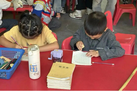 活动中,志愿者们化身三大“专项特工队”,各展所长。大班作业辅导小队开启“知识闯关模式”,面对小朋友们天马行空的问题,志愿者们耐心解答,用鼓励代替催促,成功将“作业困难户”转变为“解题小能手”。